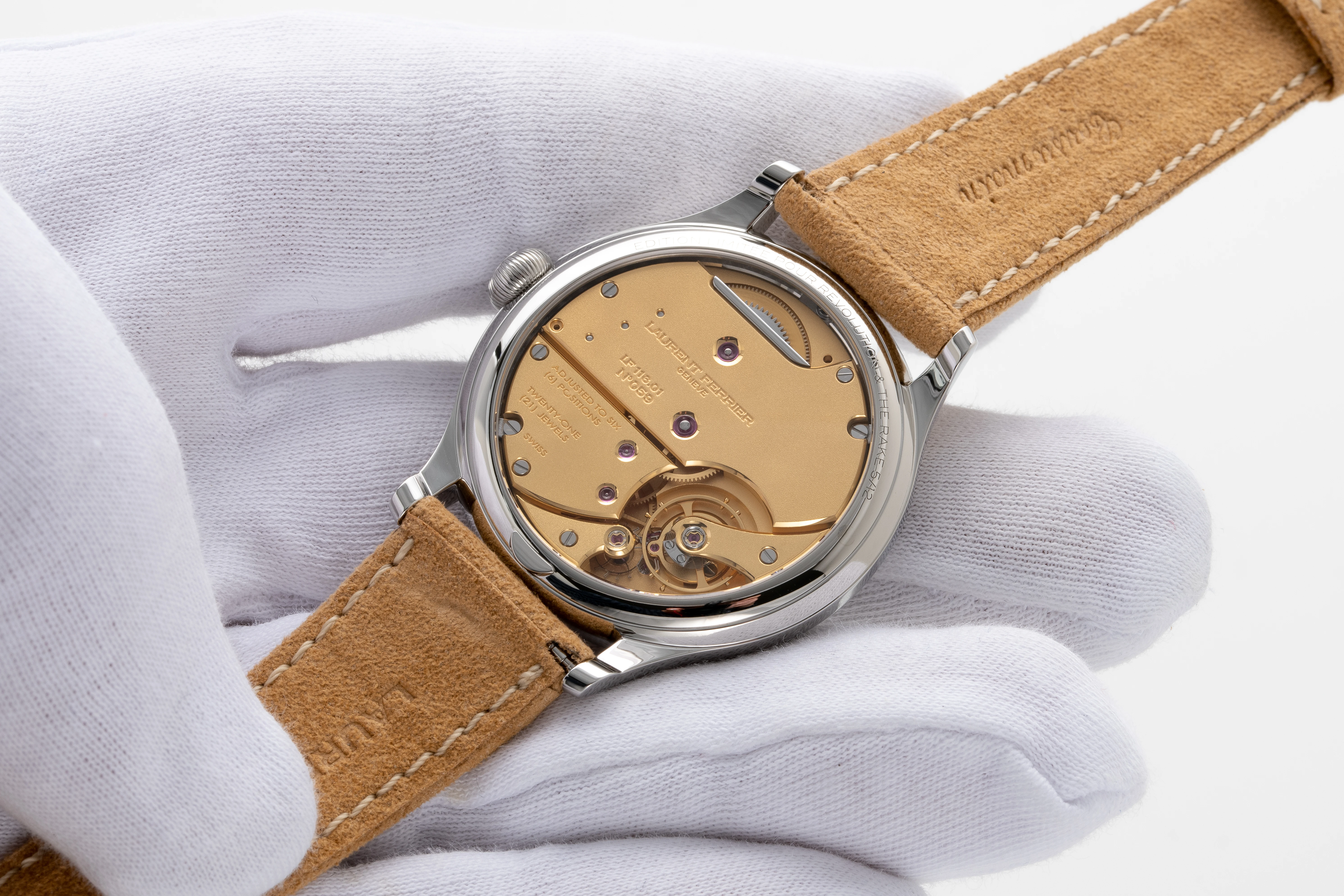 | Strap | Light brown calf strap, with original stainless steel Laurent Ferrier pin buckle |