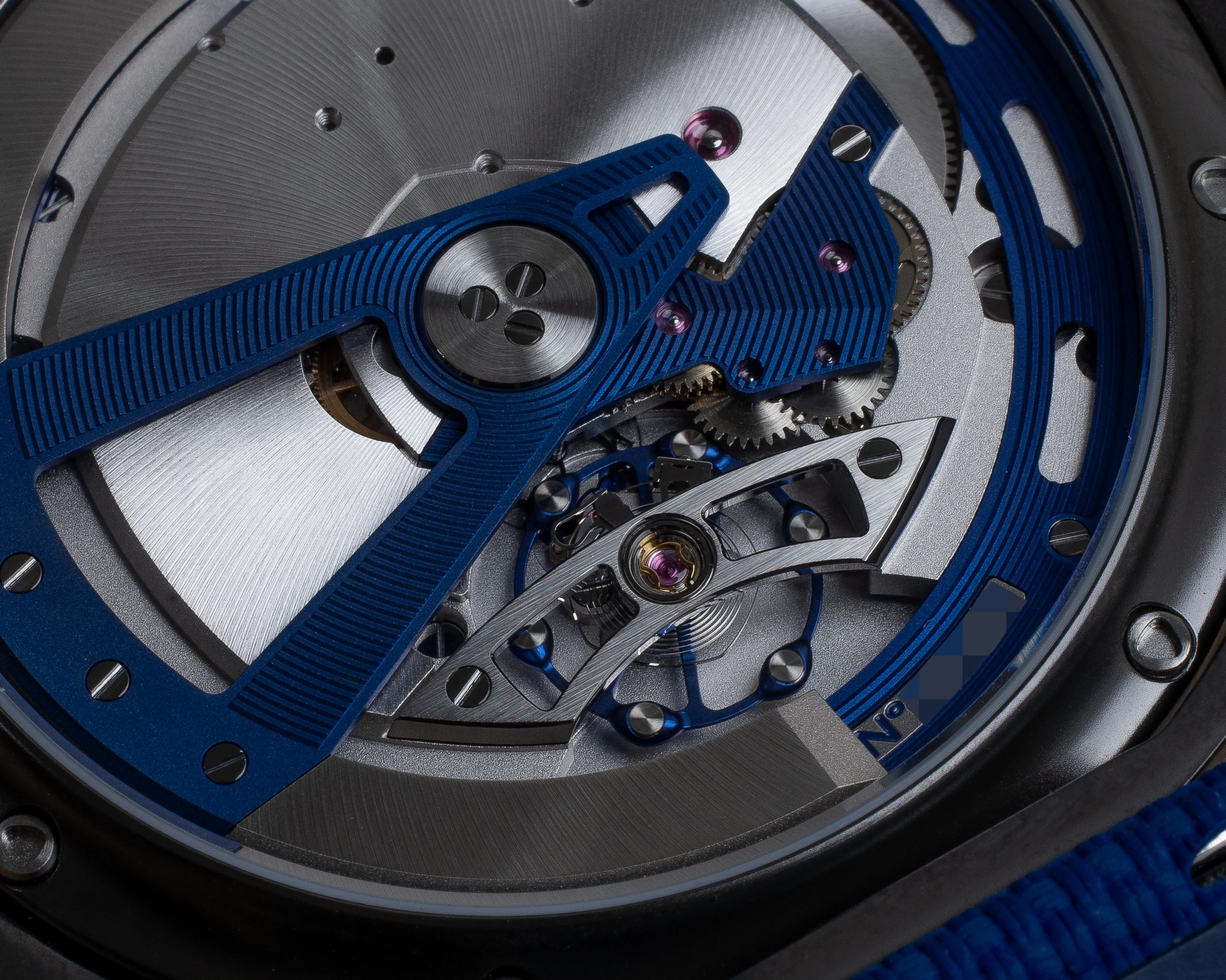 The color scheme of the dial is repeated in the design of the movement, adding to the appeal of this version of the DB27 Titan Hawk V2.