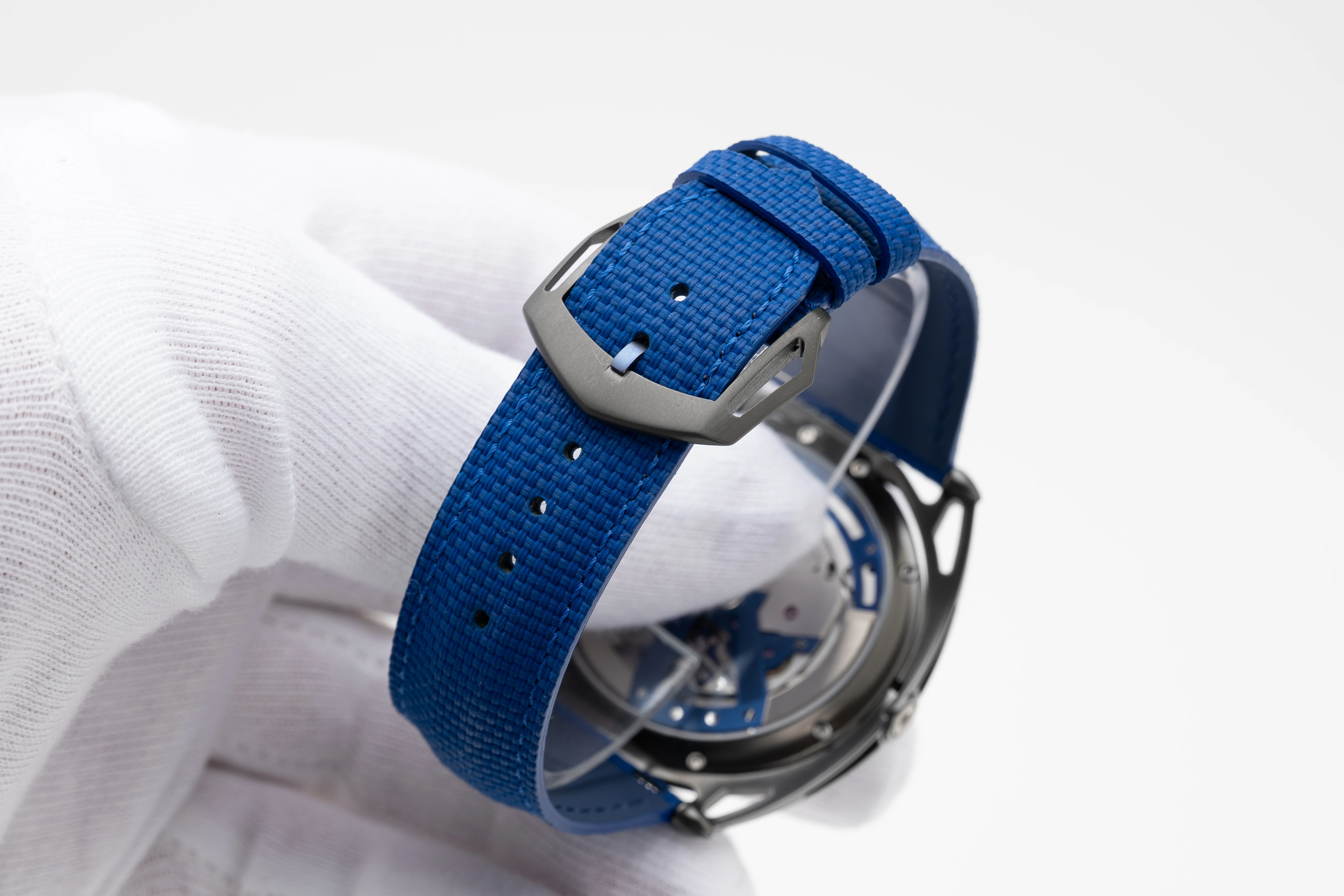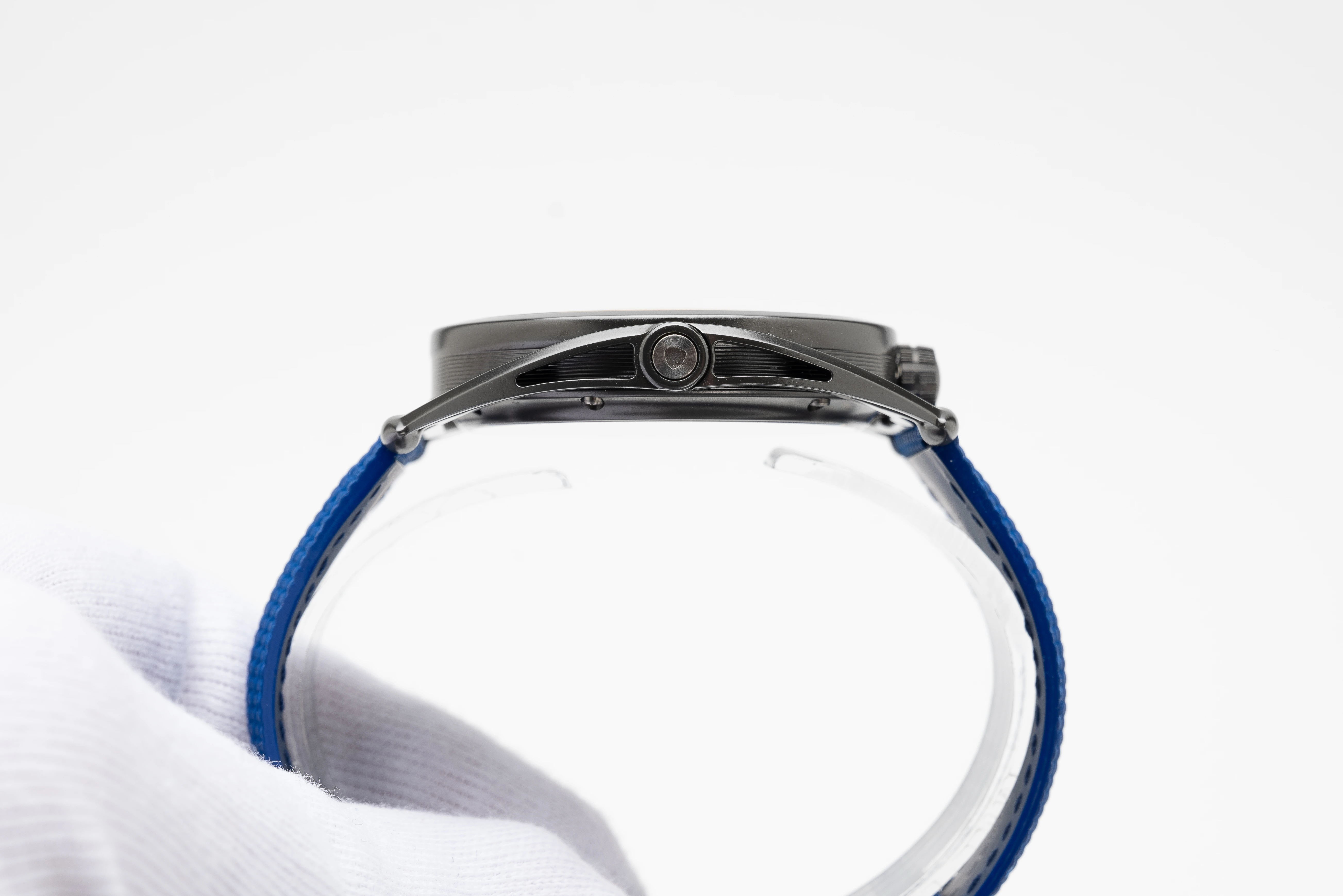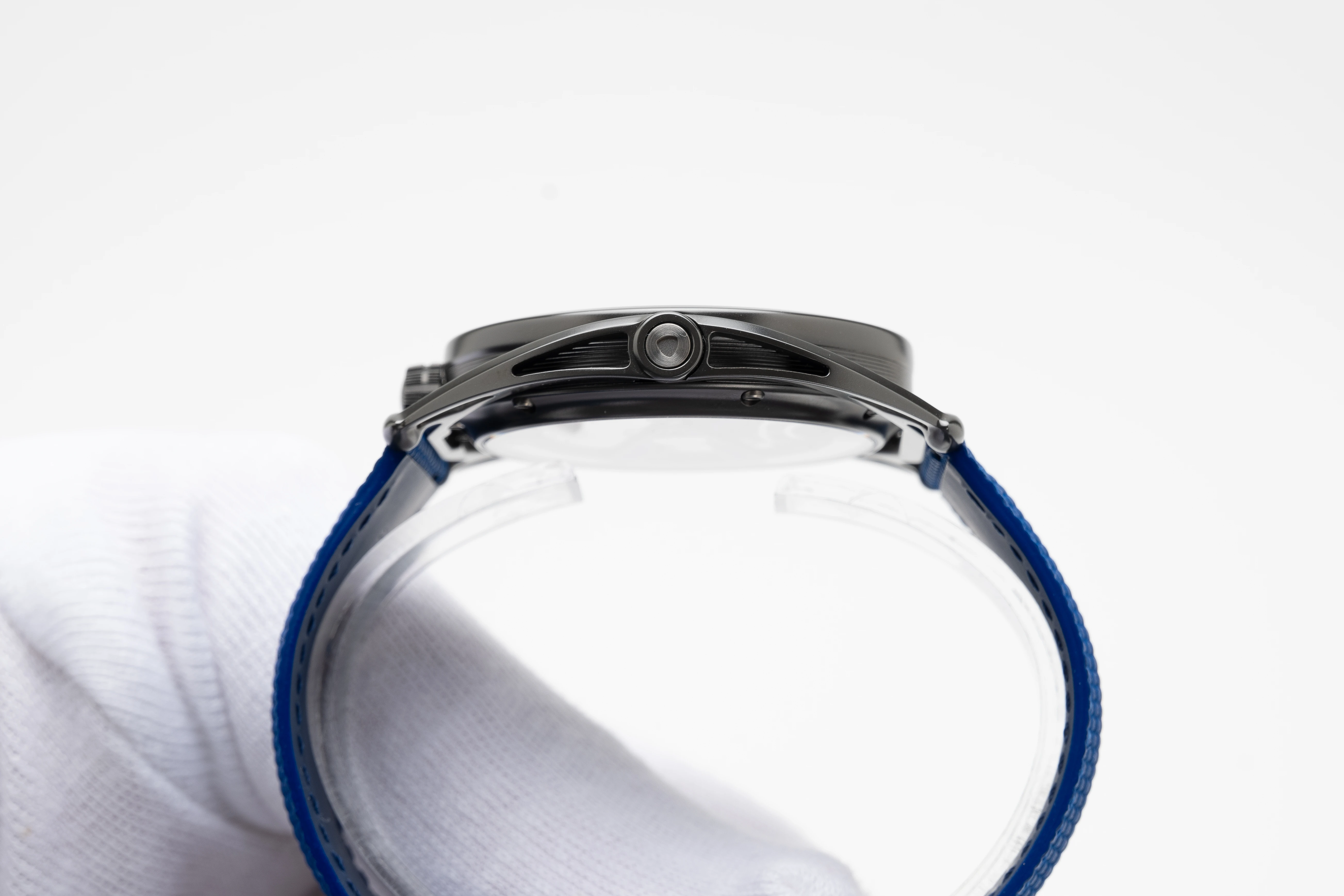 In our opinion, finding a rare version of De Bethune is a real event, considering that any watch from this brand is already a rarity. The DB27 Titan Hawk V2 Qatar Edition 20 exemplifies the identity of the De Bethune collection in general and the DB27 line in particular: It has a thin, elegant 9 mm titanium case with the brand’s signature ‘floating’, spring-loaded lugs that make the watch a real pleasure to wear on the wrist. They wrap confidently yet gently around the wrist, making you reluctant to part with them for even a second. A similar effect is achieved by the fascinating two-tone dial with a blue titanium center zone with fine concentric grooves that create a sunburst effect and stunning openworked hands in the typical DB27 design. This very rare watch is part of a special limited edition of 20 pieces, making it even more desirable.
