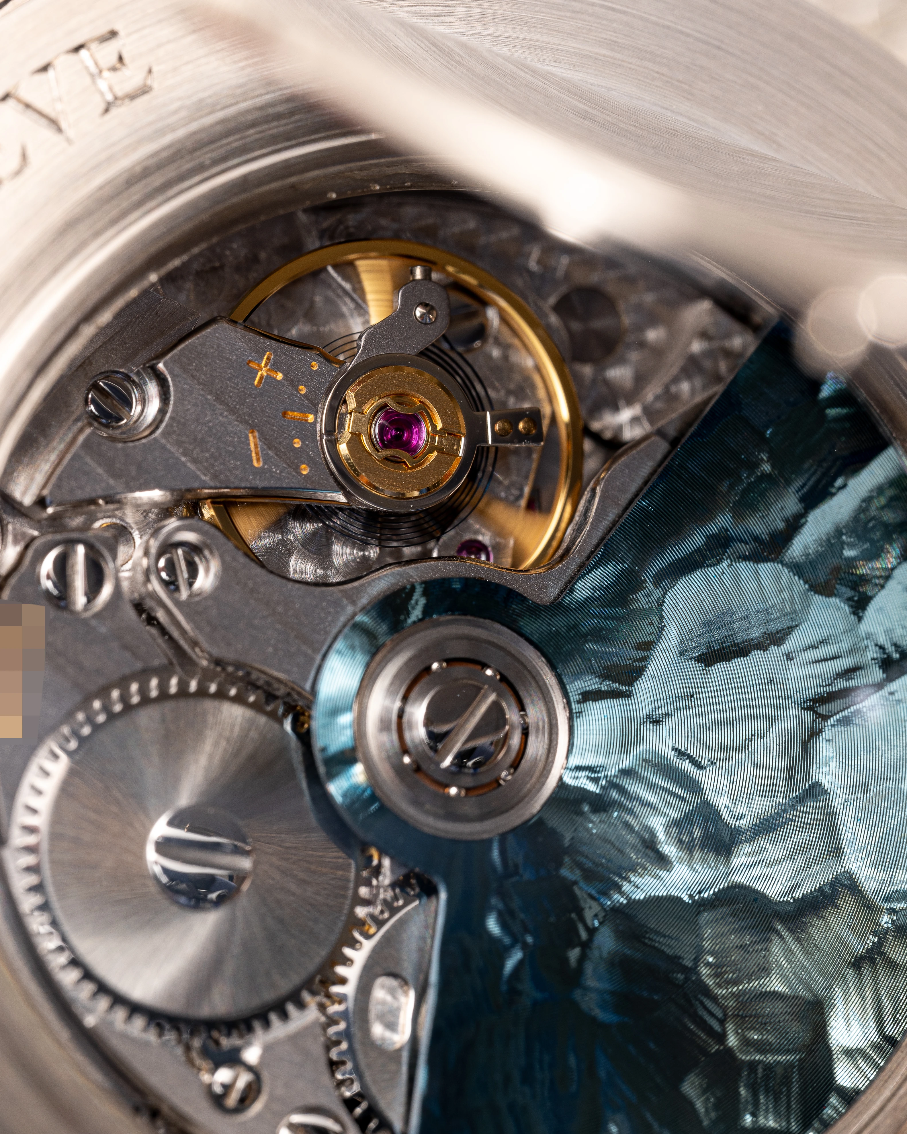 The special feature of the Tempus Terrae design is its slim (9 mm thick) and therefore elegant case. The design was created with collectors in mind, which is why the exhibition caseback is additionally protected by a hinged, solid gold cover, just like an “officer’s” watch. Svend Andersen does this differently to Patek Philippe, for example – in the Tempus Terrae, the hinged cover only covers the middle part of the case, where the sapphire crystal is installed. This model with a bezel set with baguette aquamarines – in the same color as the blue gold of the dial – is apparently being produced in a small special series, as evidenced by the engraved number 4 on the hinged cover.