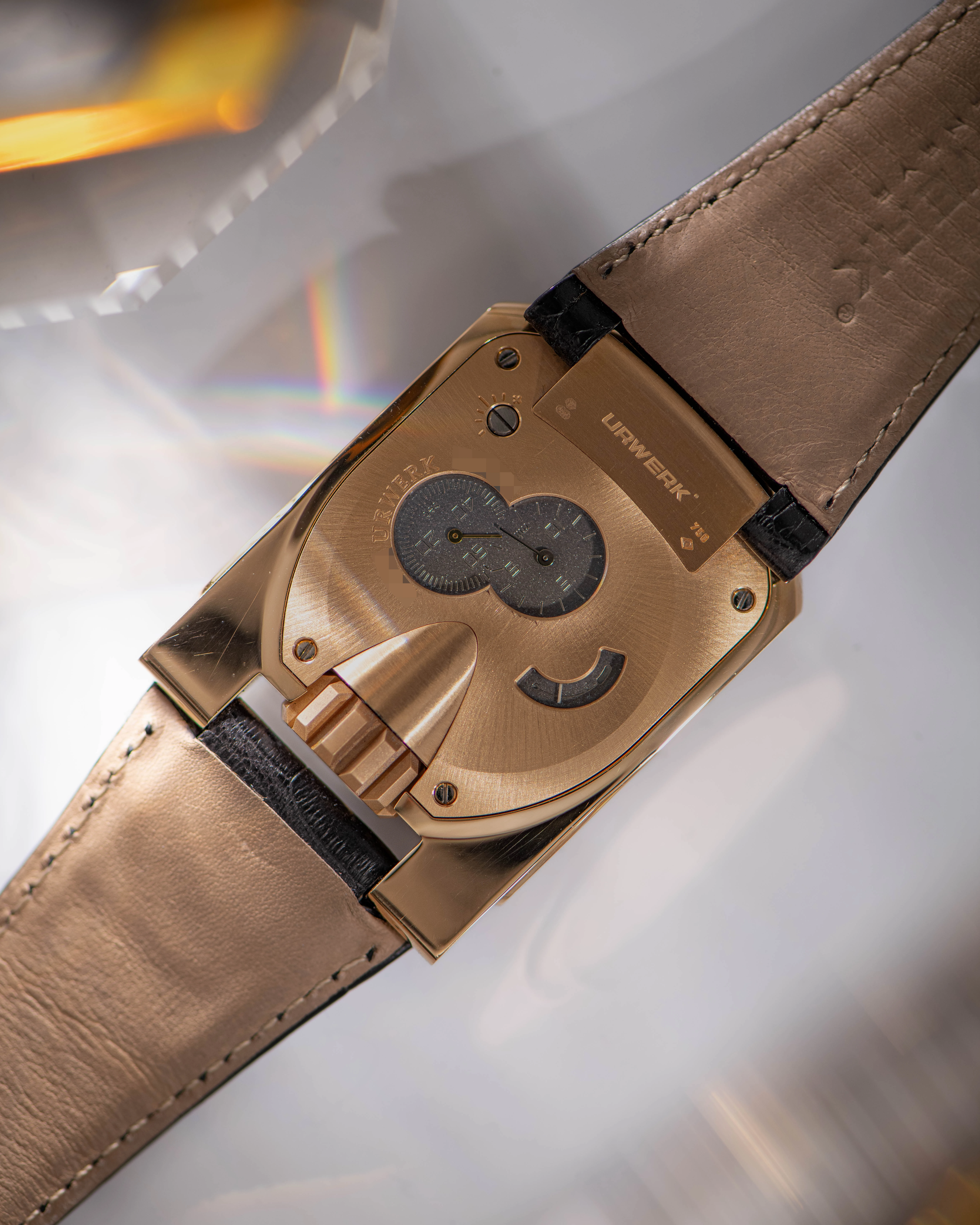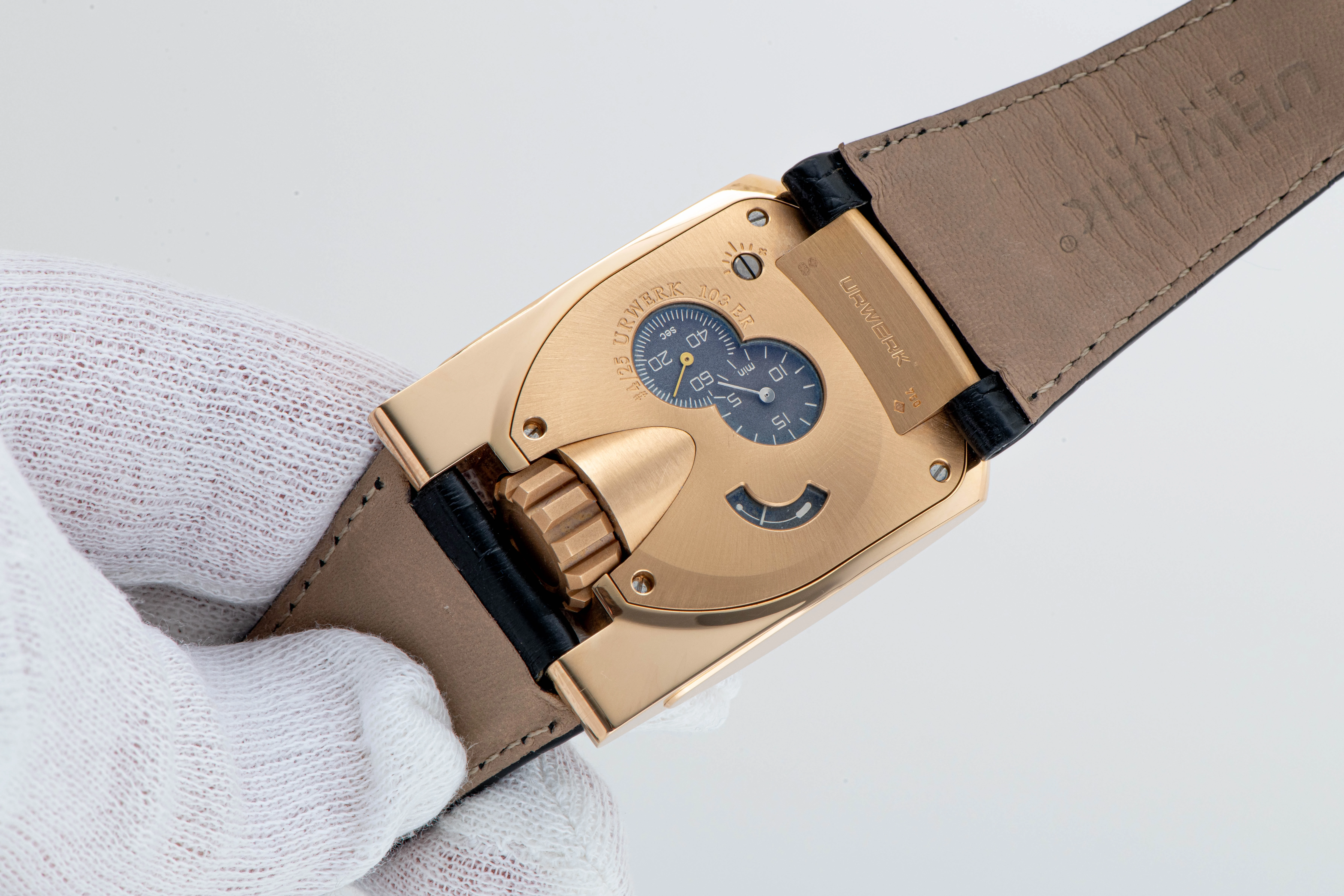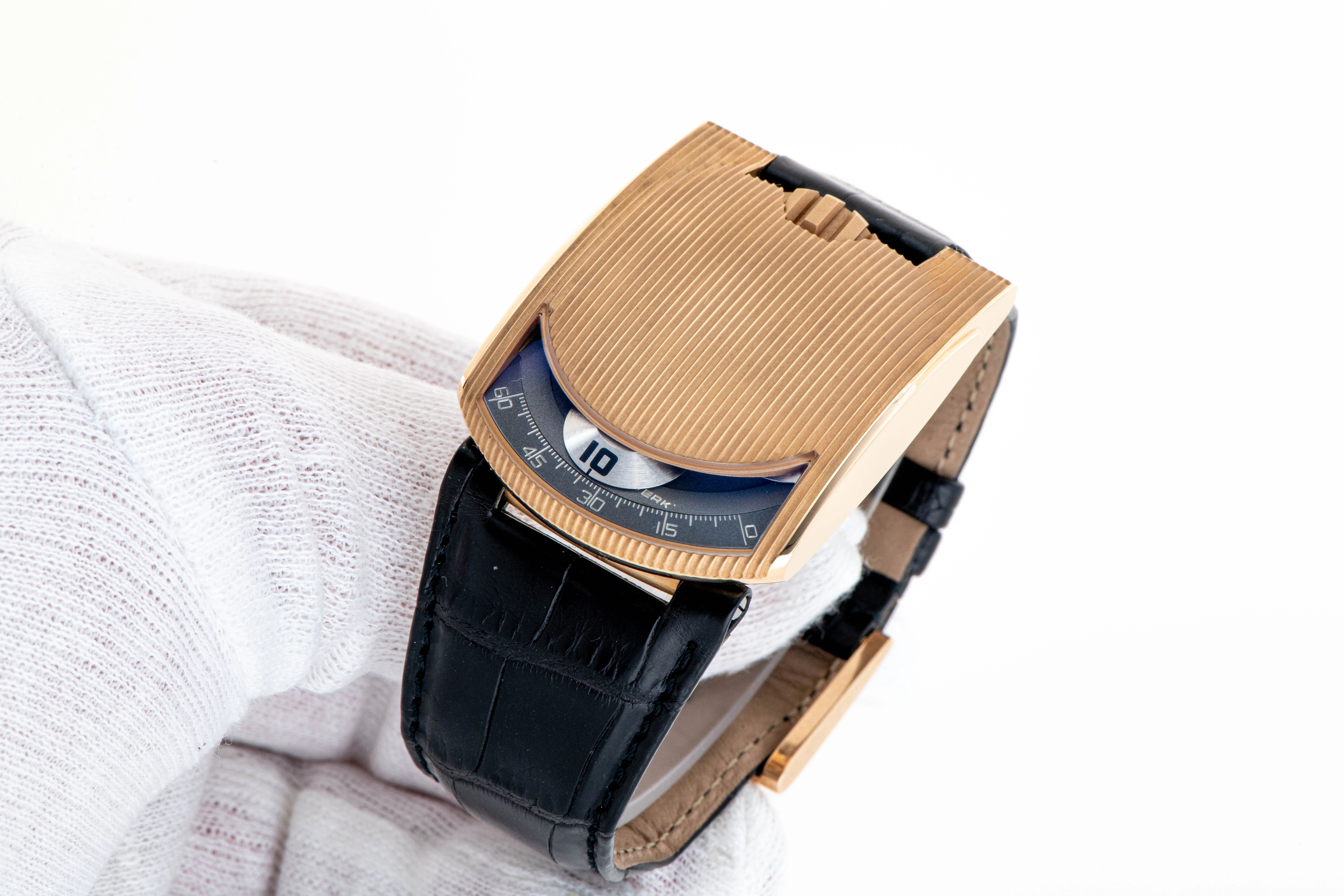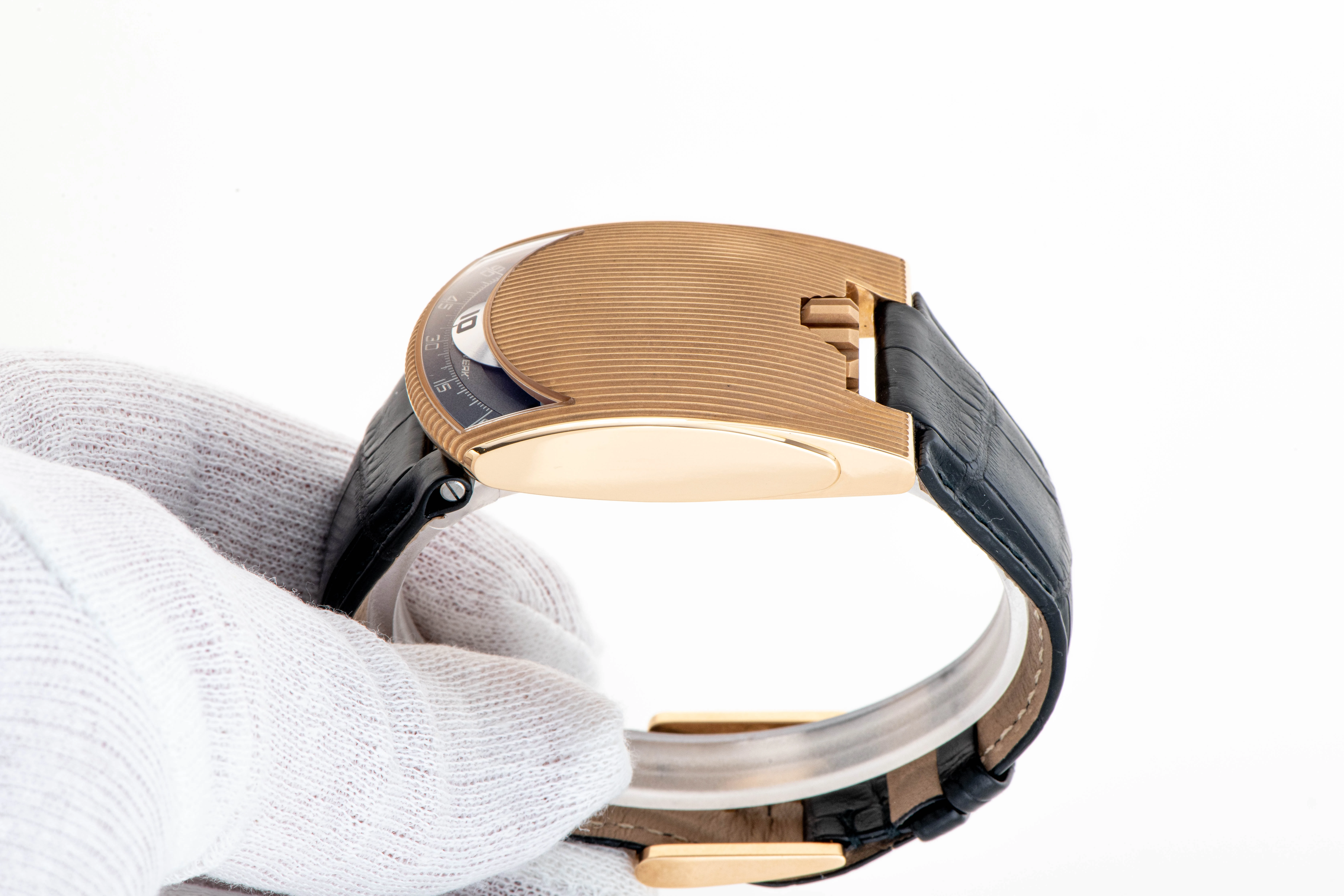 This UR-103.01 ER seems like a great opportunity to acquire an iconic wristwatch launched by an up-and-coming independent watchmaker in 2003, when the general passion for the creativity of independent watchmakers was just awakening. The Urwerk UR-103 is one of the most recognizable designs in modern "haute horlogerie". The undisputed advantage of the early Urwerk is its rarity. The UR-103.01 ER dates back to the very beginnings of the brand, which is why the number of models produced at that time is extremely small, including this watch, which is part of a limited edition of just 25 pieces in 18k rose gold.