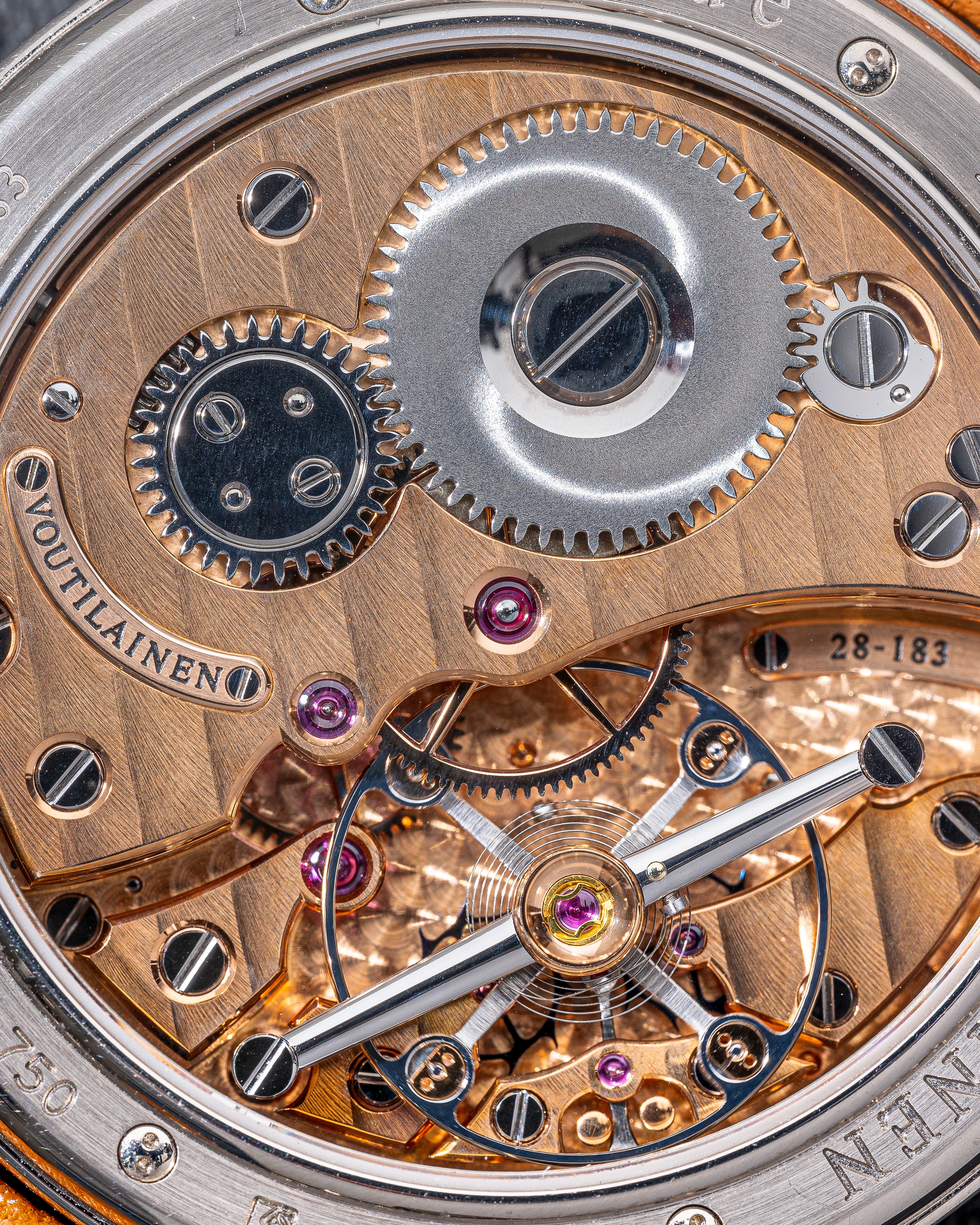 Among today’s independent watchmakers, Kari Voutilainen is considered one of the best in the art of handcraftsmanship. He masters this art to perfection and applies it to parts of the caliber, hands, dial and case. He is also a talented inventor and caliber designer who has launched a series of minute repeaters with a rare decimal function. In 2011, he developed the outstanding in-house base caliber 28 for the watches produced under his brand's name, which can be considered the perfect movement for a collector's watch. It is based on the principles of an observatory chronometer caliber and of course with the design of the famous Peseux 260 observatory caliber in mind. Its concept includes a very large balance wheel, a classic layout and excellent hand finishing of all parts of the caliber, including an incredibly carefully crafted balance bridge that allows an unobstructed view of the escapement and balance wheel.