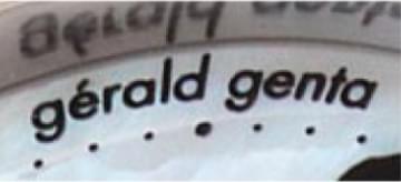 The Type1c logo was discovered on some watches around 1990. It is a small but significant change from the Type1b logo, as the ‘e’ was given an acute accent and the ‘t’ a full horizontal cross stroke. Since 1993, the Type1c logo has appeared in the engravings on the caseback of the watches. It is also interesting to note that a watch with the Type1c logo on the caseback does not necessarily have the Type1c logo on the dial, where the Type1b logo often appears. This phenomenon corresponds to the technical version of the emergence of variations of the Gérald Genta logo, which is mainly due to the fact that different components being supplied by different suppliers. The same could have happened with the variations of the logo on the dials: it is quite possible that different versions of Type1 logo of dials were ordered from different suppliers. For example, the Type1b logo on the decorative lapis lazuli disk of the moon phase display (an almost obligatory feature of Gérald Genta perpetual calendar watches) remained virtually unchanged during the production run of these models until 1996.