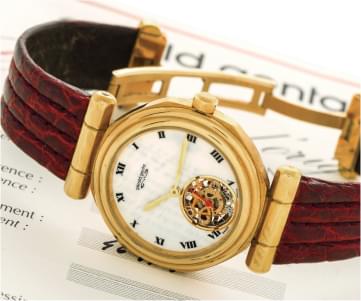 In 1988, the brand launched an automatic tourbillon caliber developed by Pierre-Michel Golay. Soon after, probably in 1989, the brand introduced its more complex version with a power reserve indicator and a central date hand. In even more complex models, this caliber was combined with the in-house perpetual calendar module. In 1989, the brand introduced a self-winding watch with tourbillon and perpetual calendar and in the same year, for the first time in the world, an automatic watch with minute repeater, perpetual calendar and tourbillon. The most complex version of this type of watch with an additional world time display (Universal Time) first appeared in the brand’s collection in 1990.