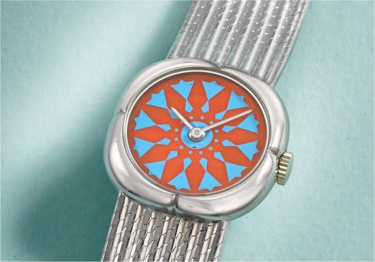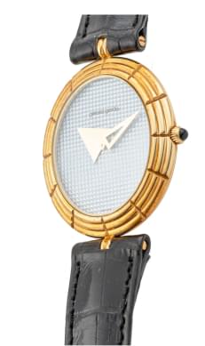 More common are cushion-shaped watches. This shape, which corresponds to Mr. Genta’s taste, appears again in a version with strongly rounded corners. We find it in the brand’s earliest wristwatch with a proven case number – the aforementioned unique piece that Mr. Genta created on behalf of King Hassan II of Morocco. Subsequently, Mr. Genta continued to use the cushion shape, but rather rarely and mainly for thin and elegant skeleton models and perpetual calendars.