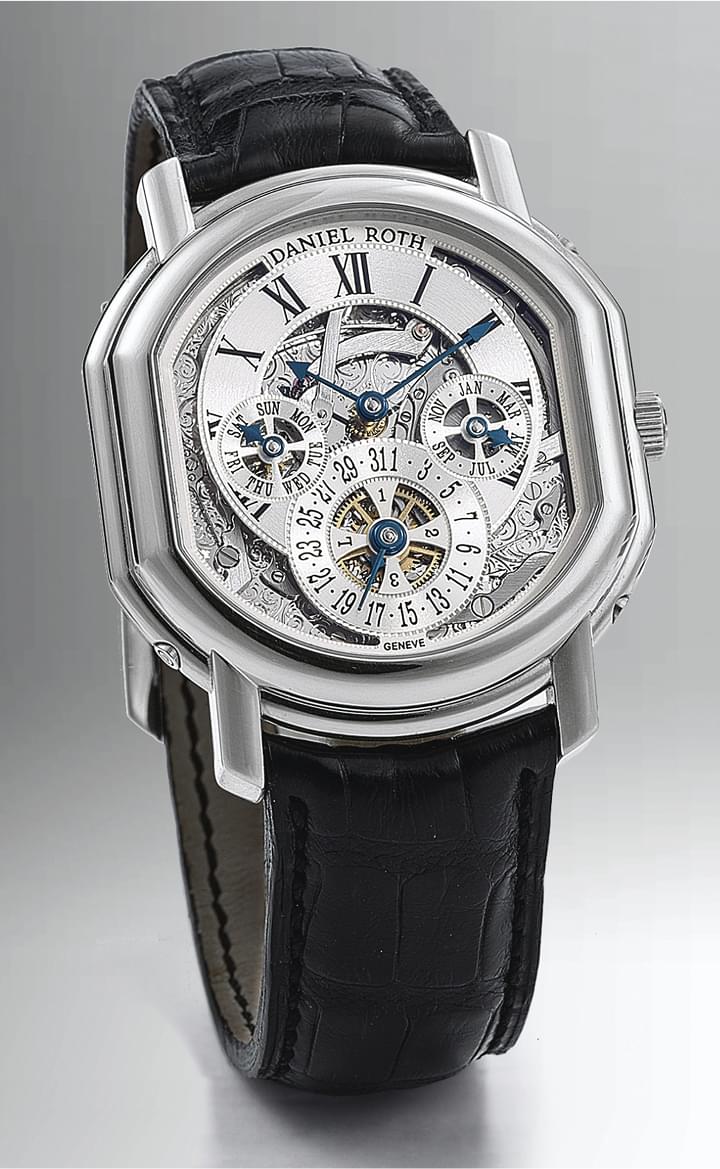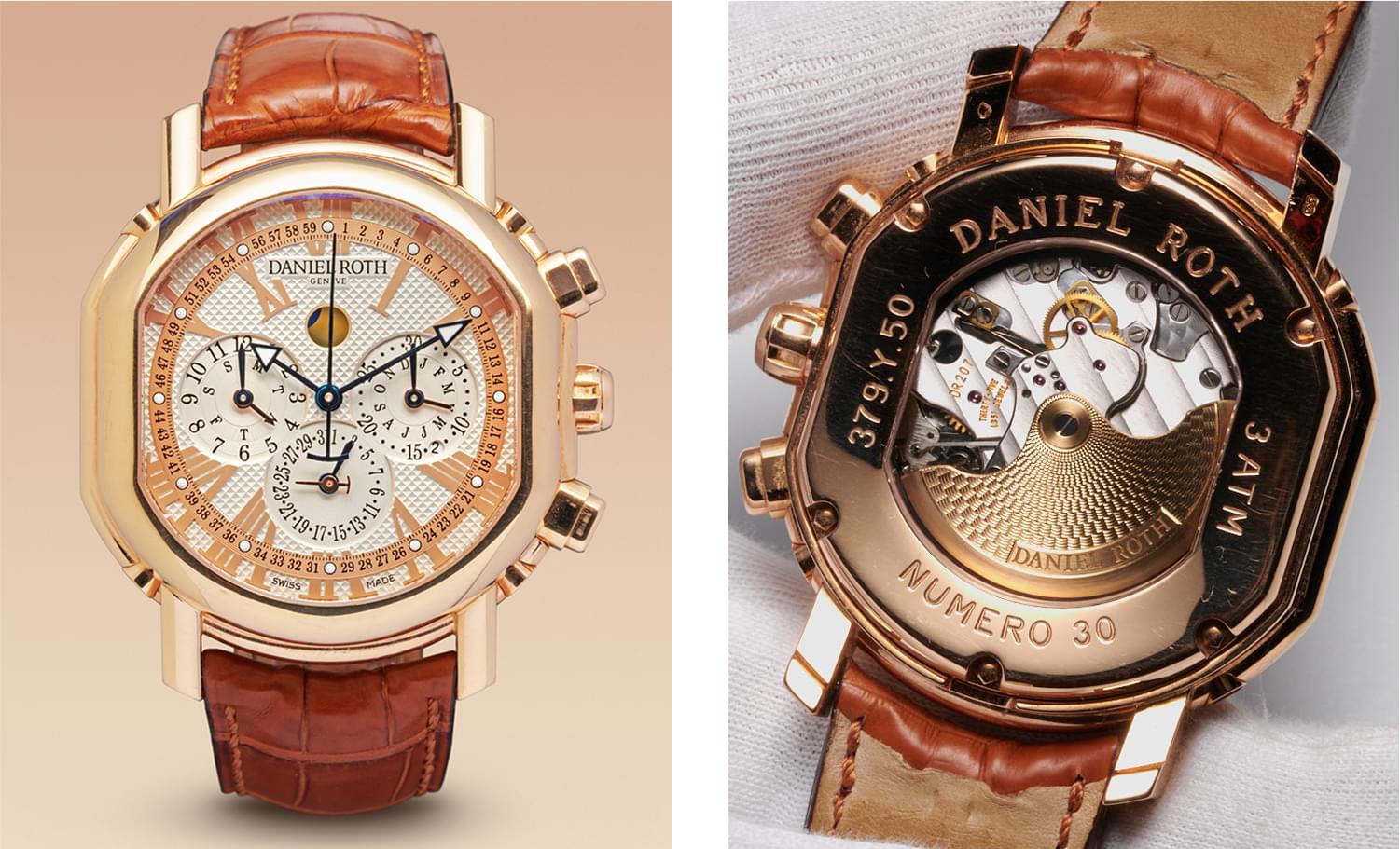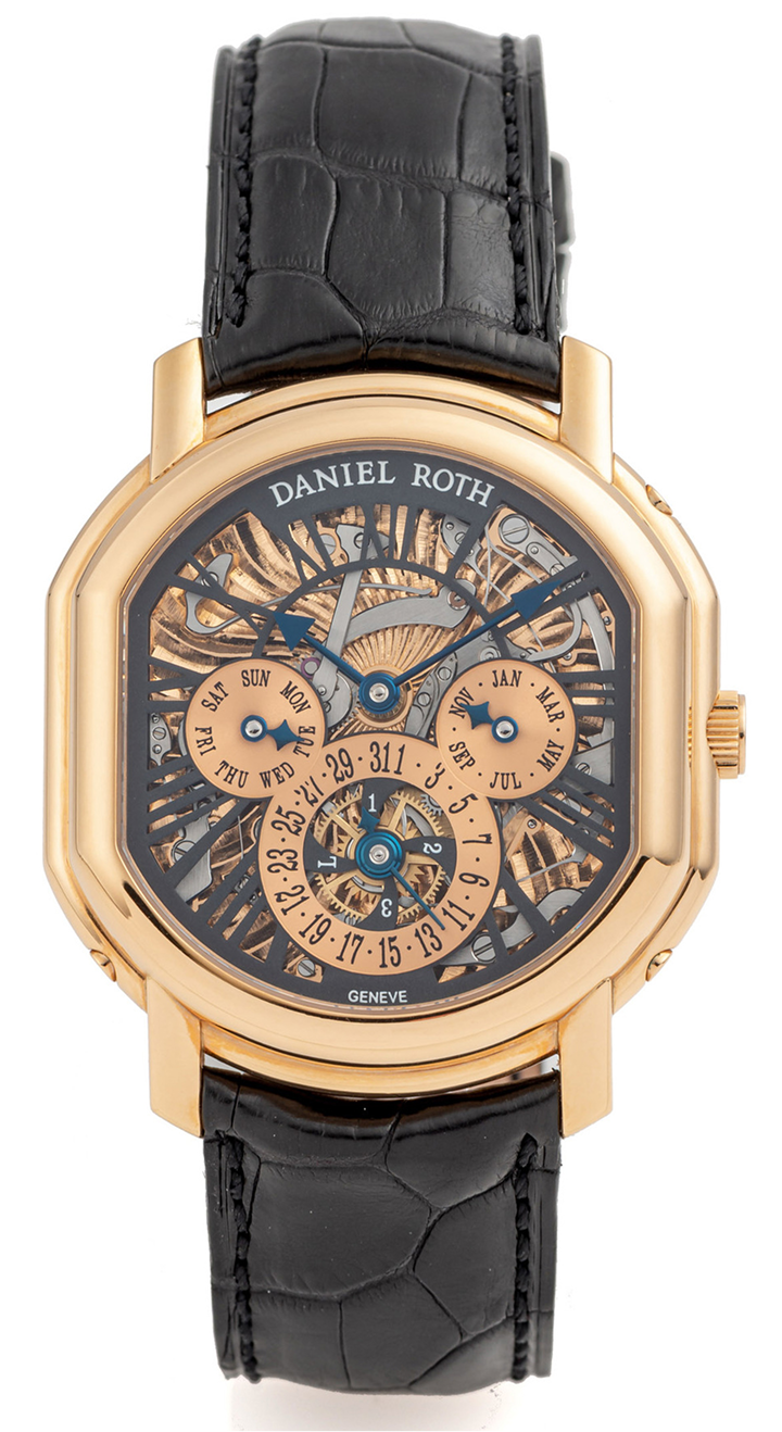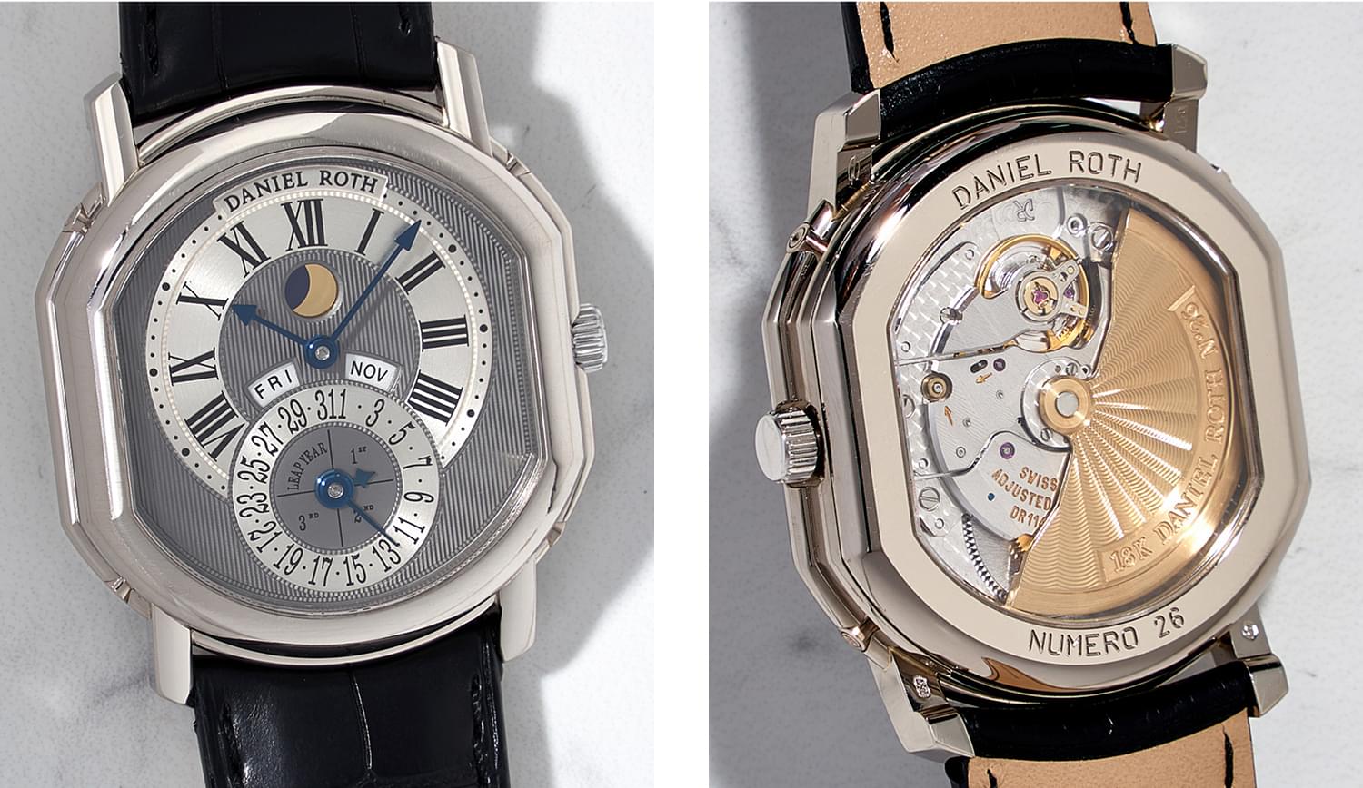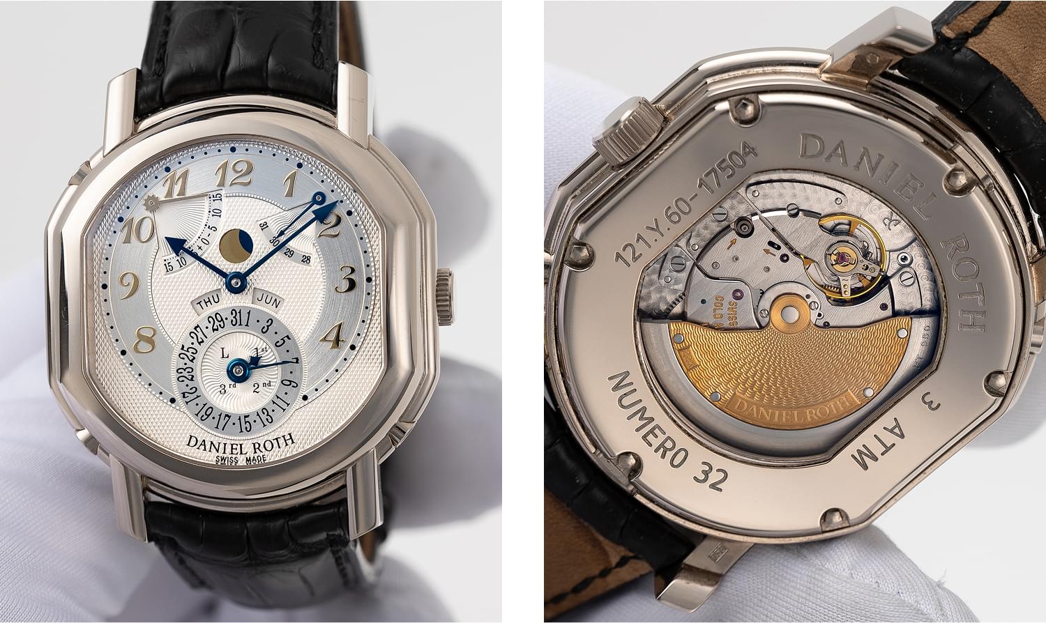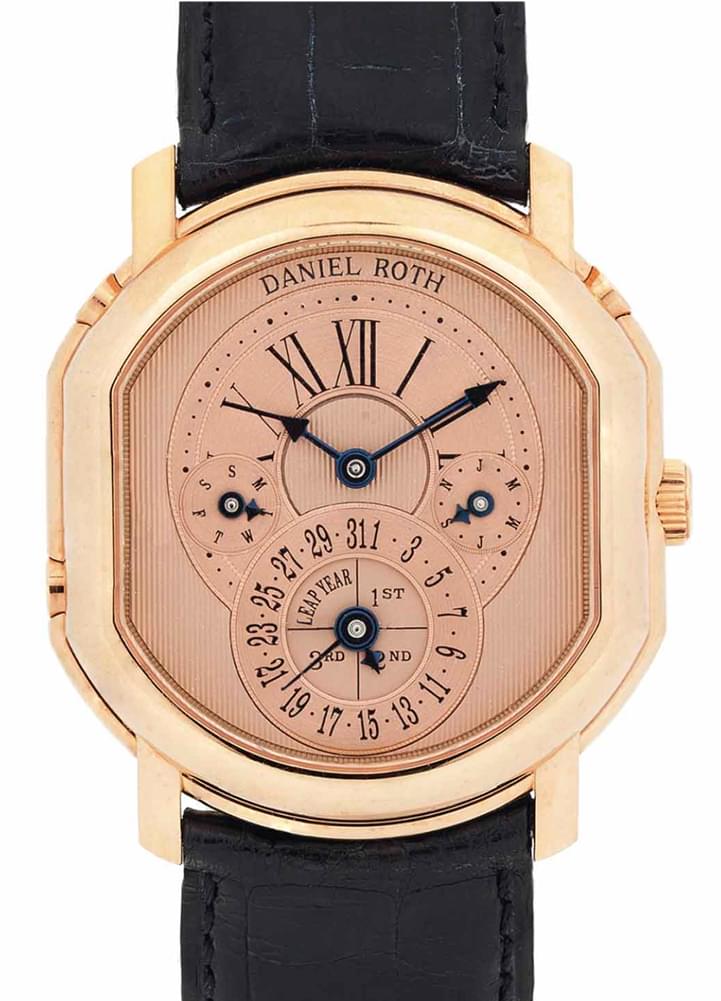The history of Daniel Roth’s perpetual calendars begins with the time when Mr. Daniel Roth (I use “Mr.” to distinguish him from the brand of the same name that he founded) was actively involved in the development of the Breguet collection in the 1970s and 1980s (until 1987), while this brand was then part of Chaumet. The first watch he produced for Breguet was a perpetual calendar – a pocket watch made entirely by hand. In an interview with Acollectedman.com, Mr. Roth recalled, “Before embarking on the journey, I wanted to properly learn about complications, which is why I went back to school. I learnt everything I could, especially about perpetual calendar movements, doing all this work by hand.”