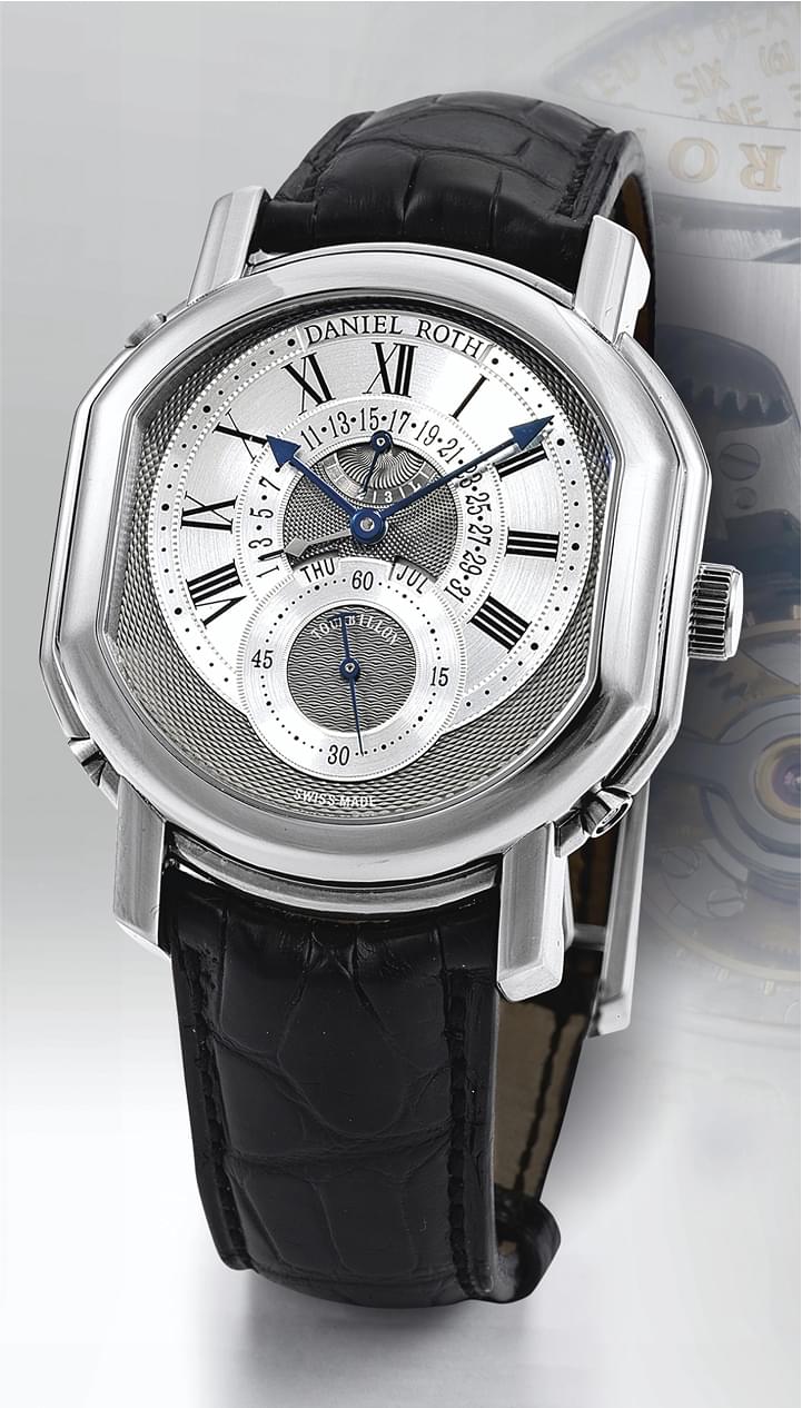 Daniel Roth offered the Ref. 118.L with an L-size case (35x38 mm) in three colors of 18k gold or 950 platinum.