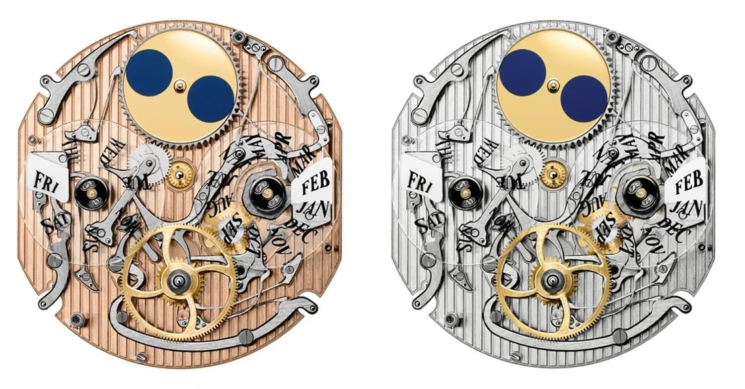 From a mechanical point of view, the perpetual calendar module of Ref. 119.X is essentially identical – it is a “semi-instantaneous” version of the module developed for Ref. 2117, with a hand for the day of the week and the month and an additional lever. The only significant change was made to adapt the module to the new base caliber.