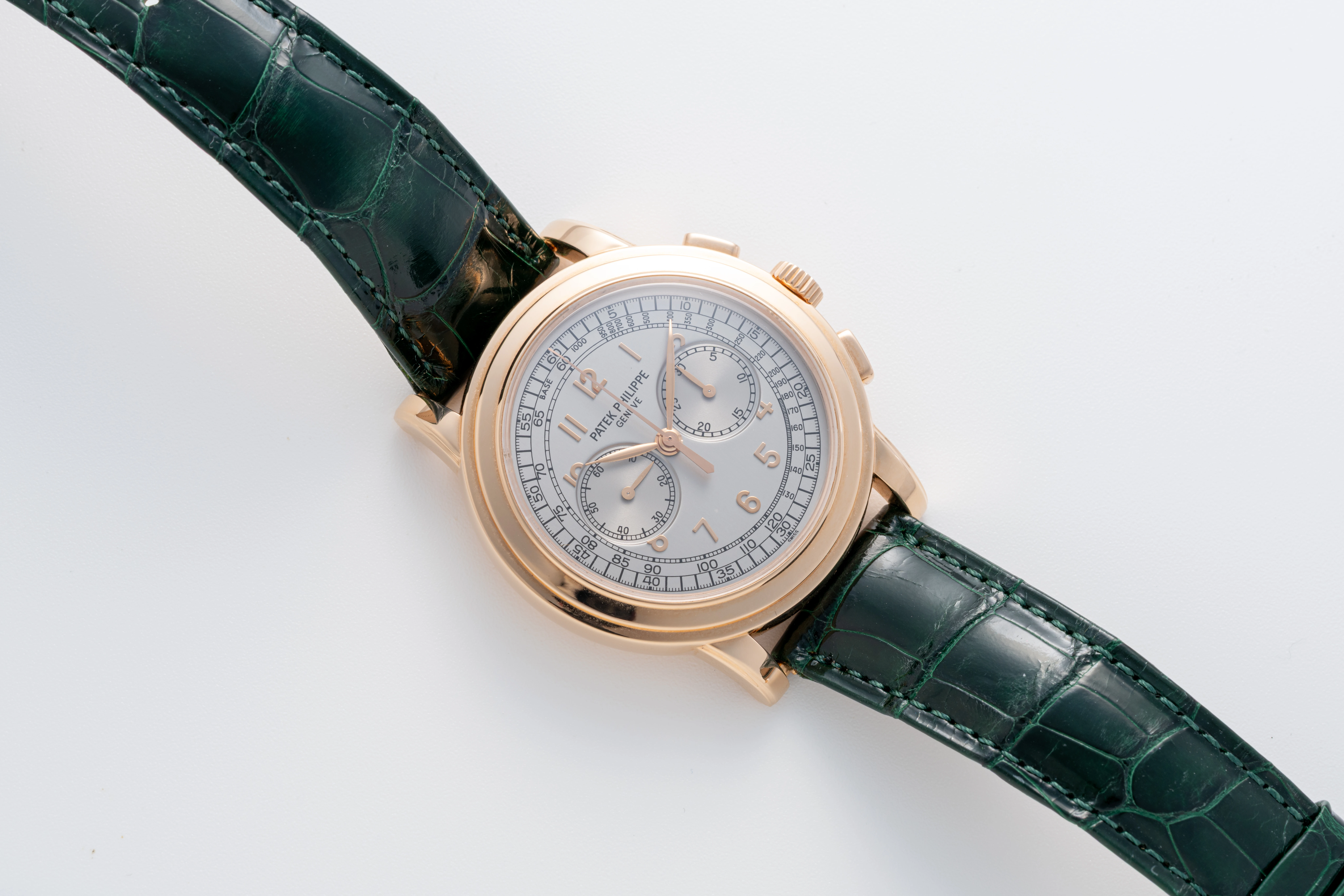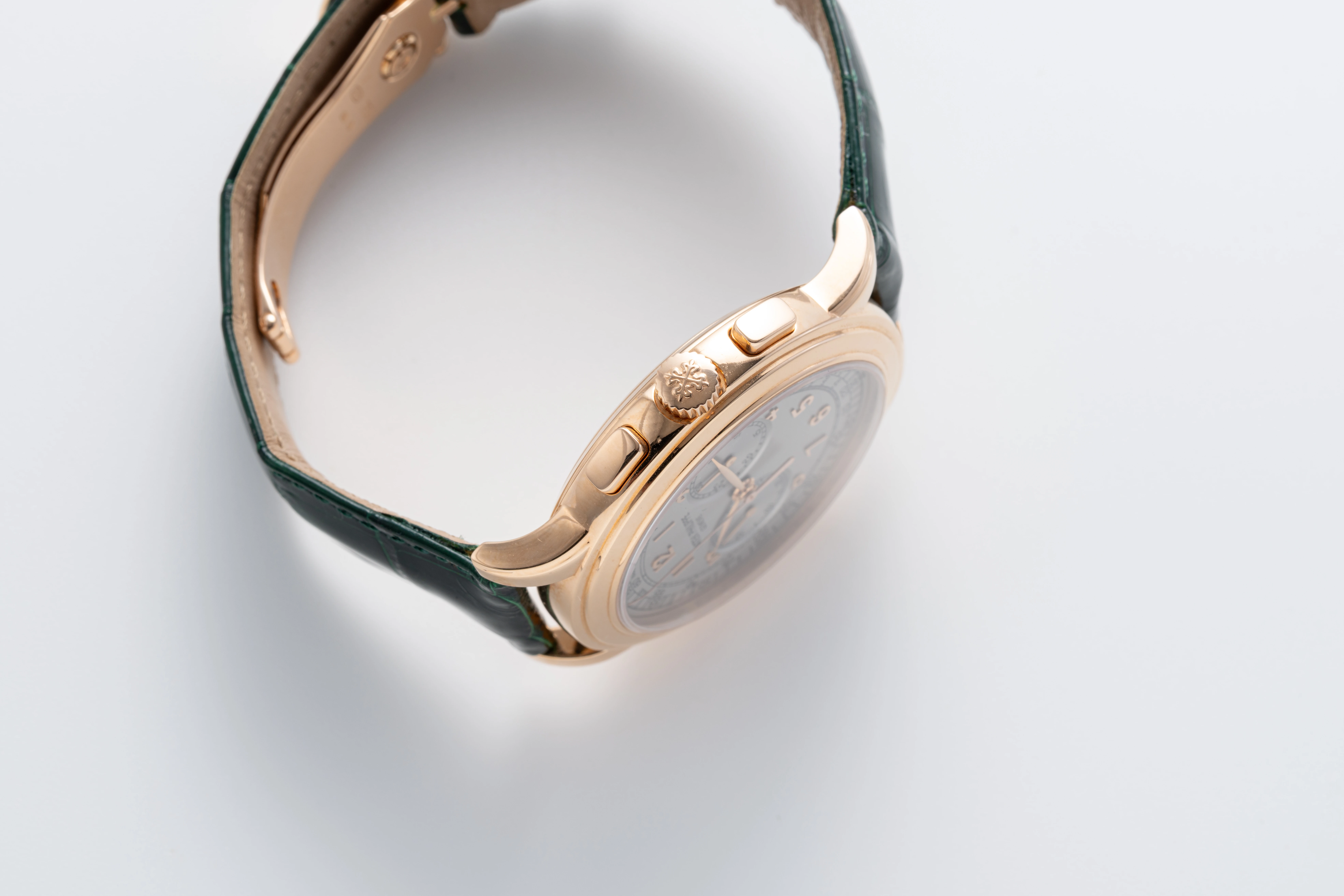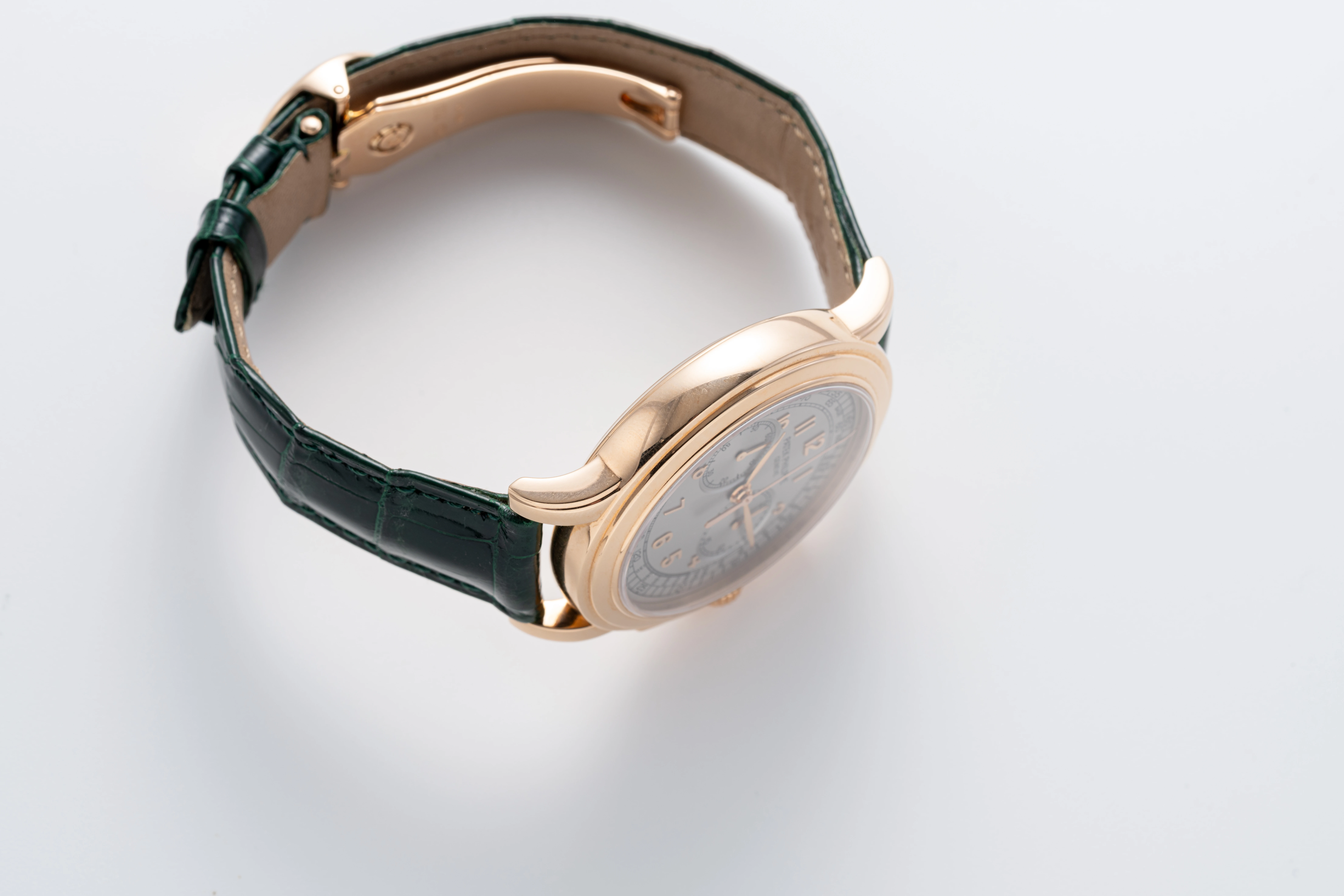 | Dial | Silver dial with applied rose gold Arabic numerals, small seconds at 9 o’clock & 30-minute counter at 3 o’clock |
