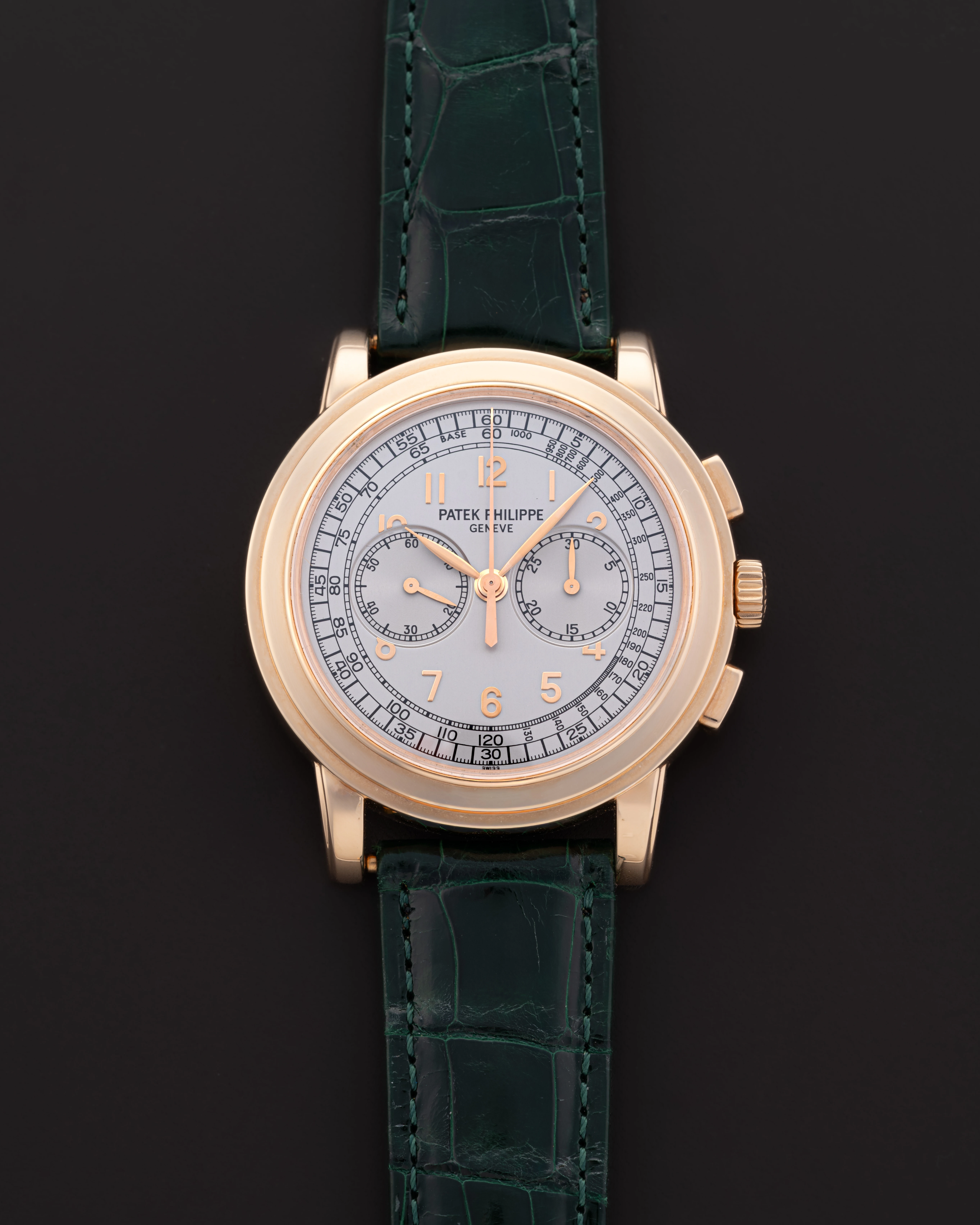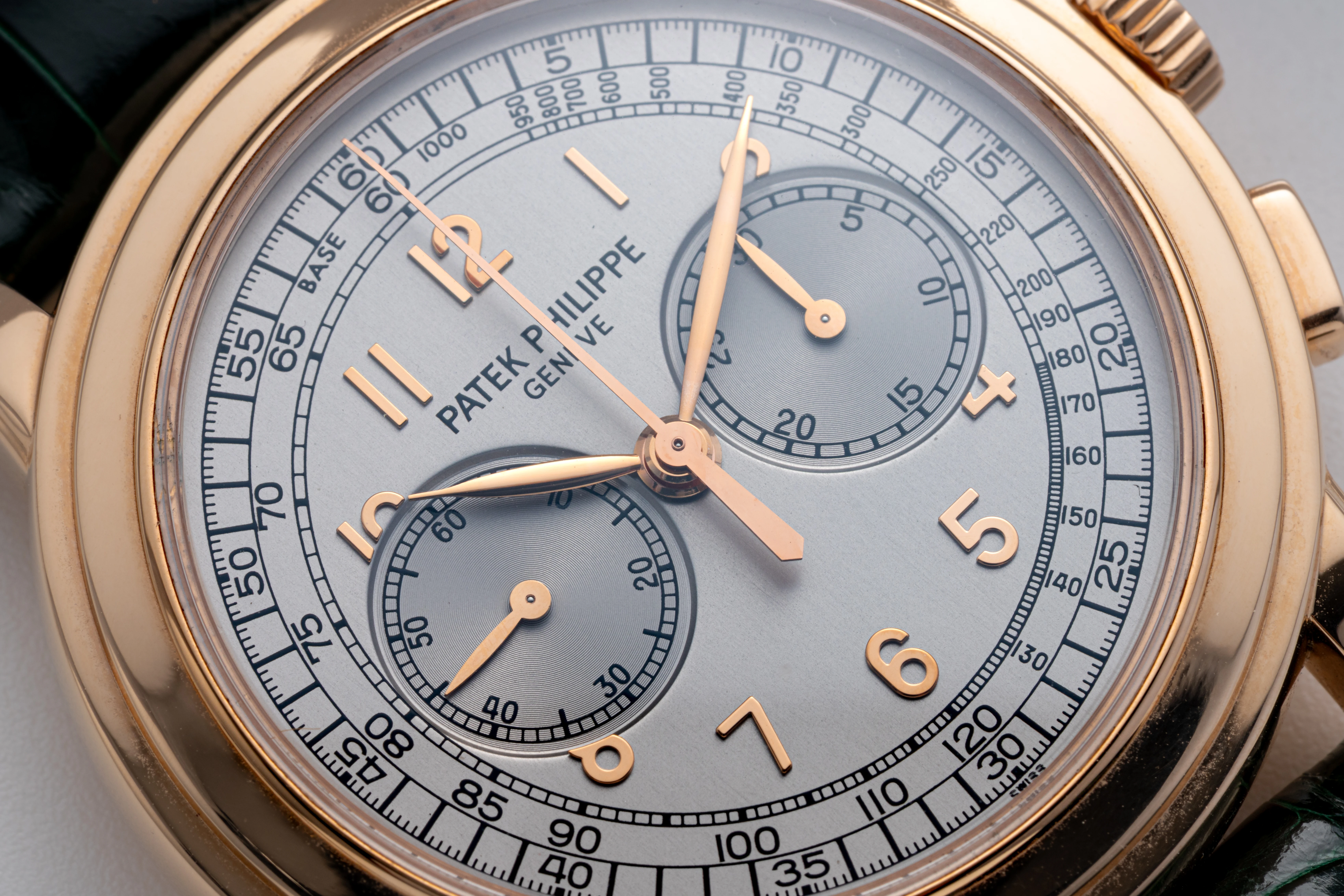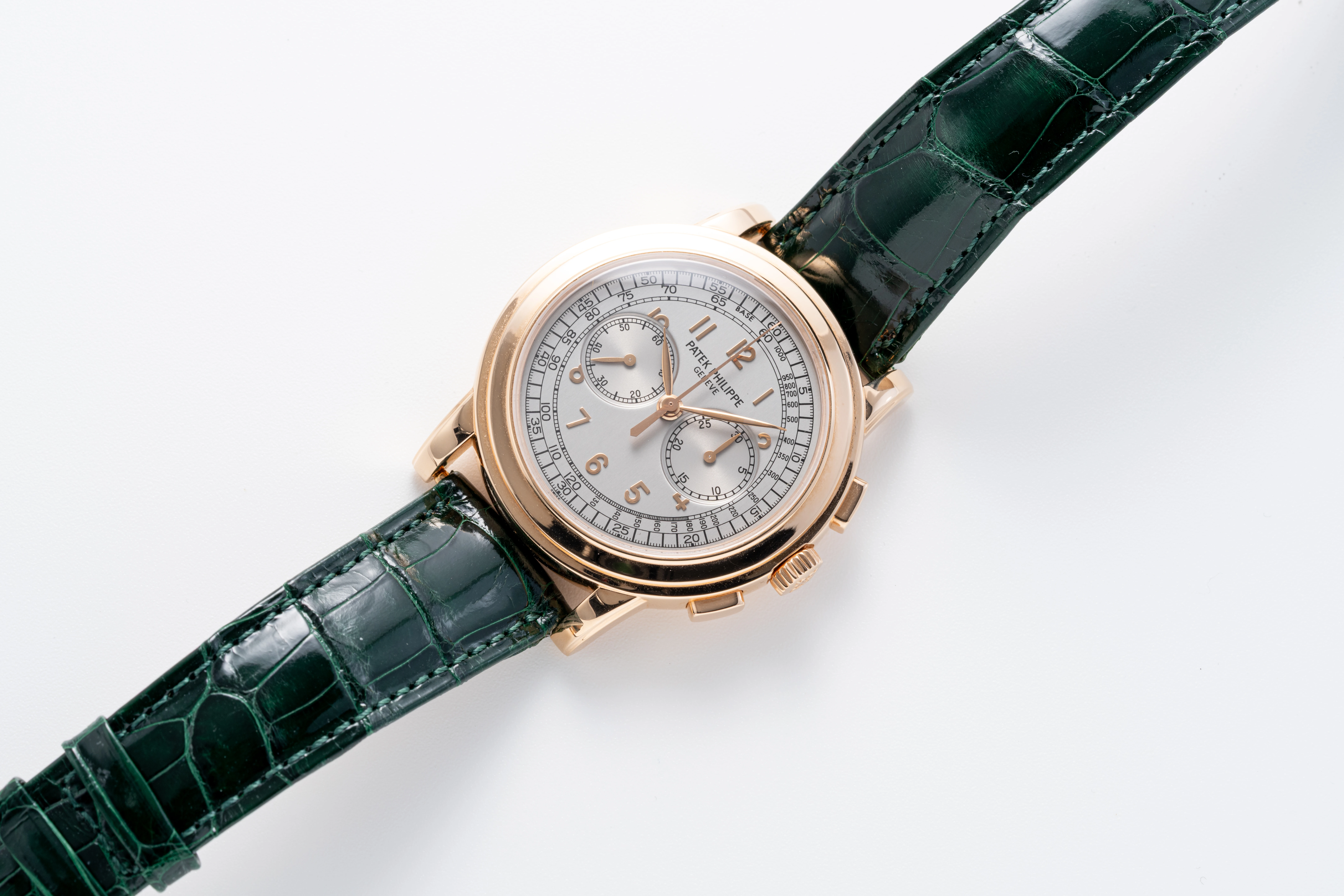 | Dial | Silver dial with applied rose gold Arabic numerals, small seconds at 9 o’clock & 30-minute counter at 3 o’clock |