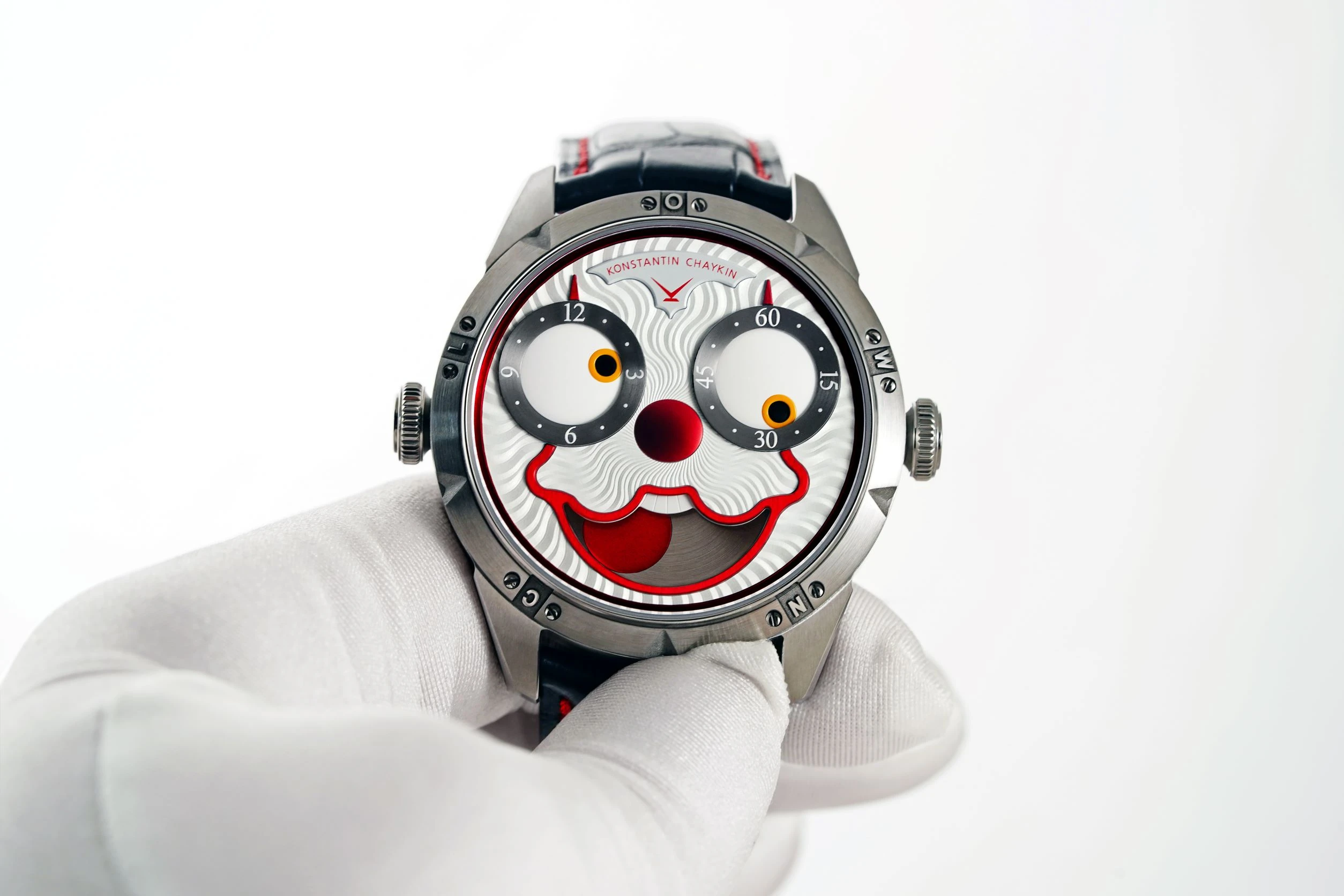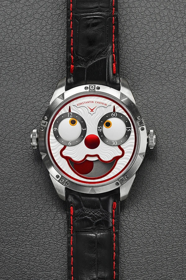 The Clown is the second watch from the Wristmons collection, created in 2017 This model made the collection of "monsters on the wrist" popular worldwide and gained recognition of experts in the watchmaking industry — it was awarded the Geneva Grand Prix of Haute Horlogerie GPHG in the category "Audacity Prize".
