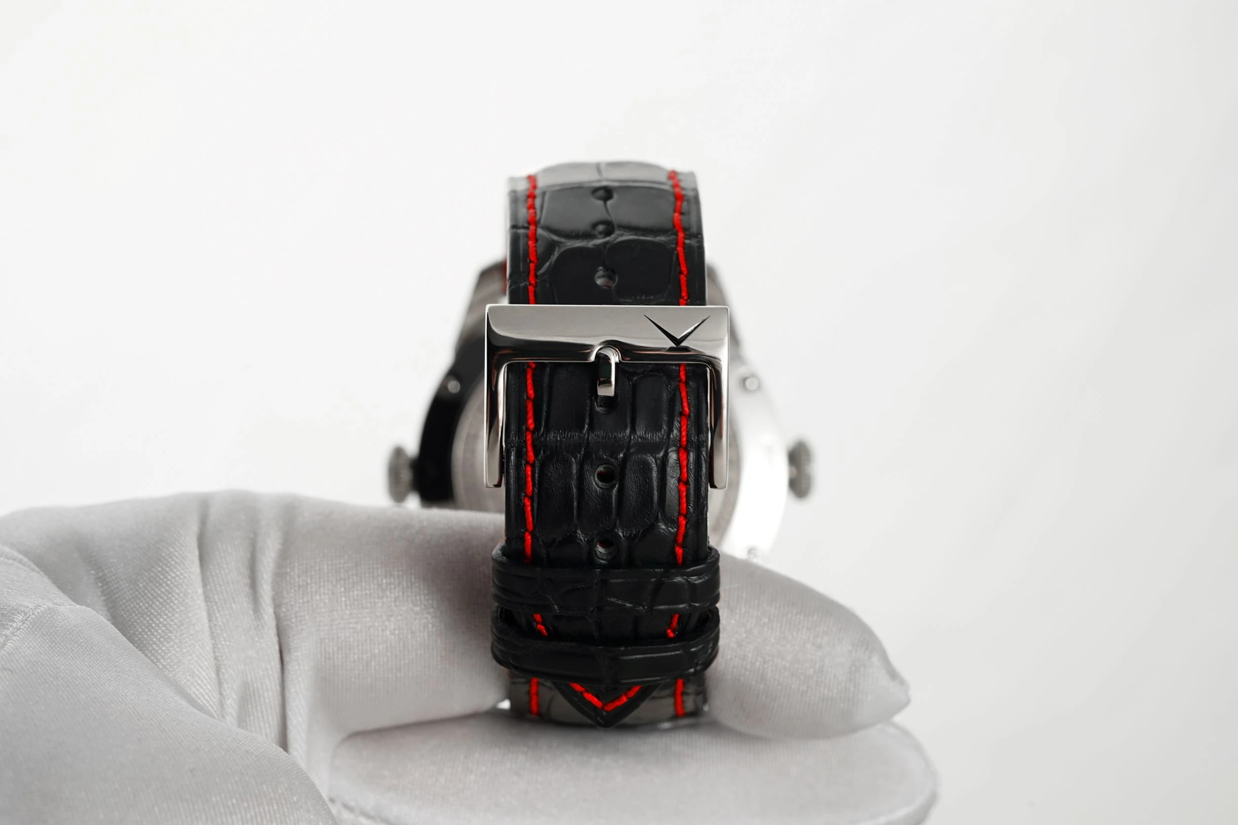 | Strap | Black alligator strap, with red stitching, original pin buckle |