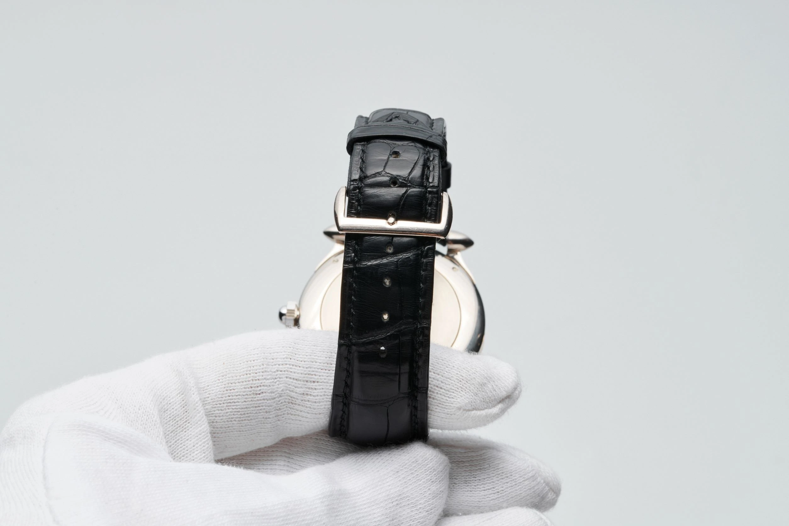 | Strap | Black Alligator leather strap, with a original white gold pin buckle |