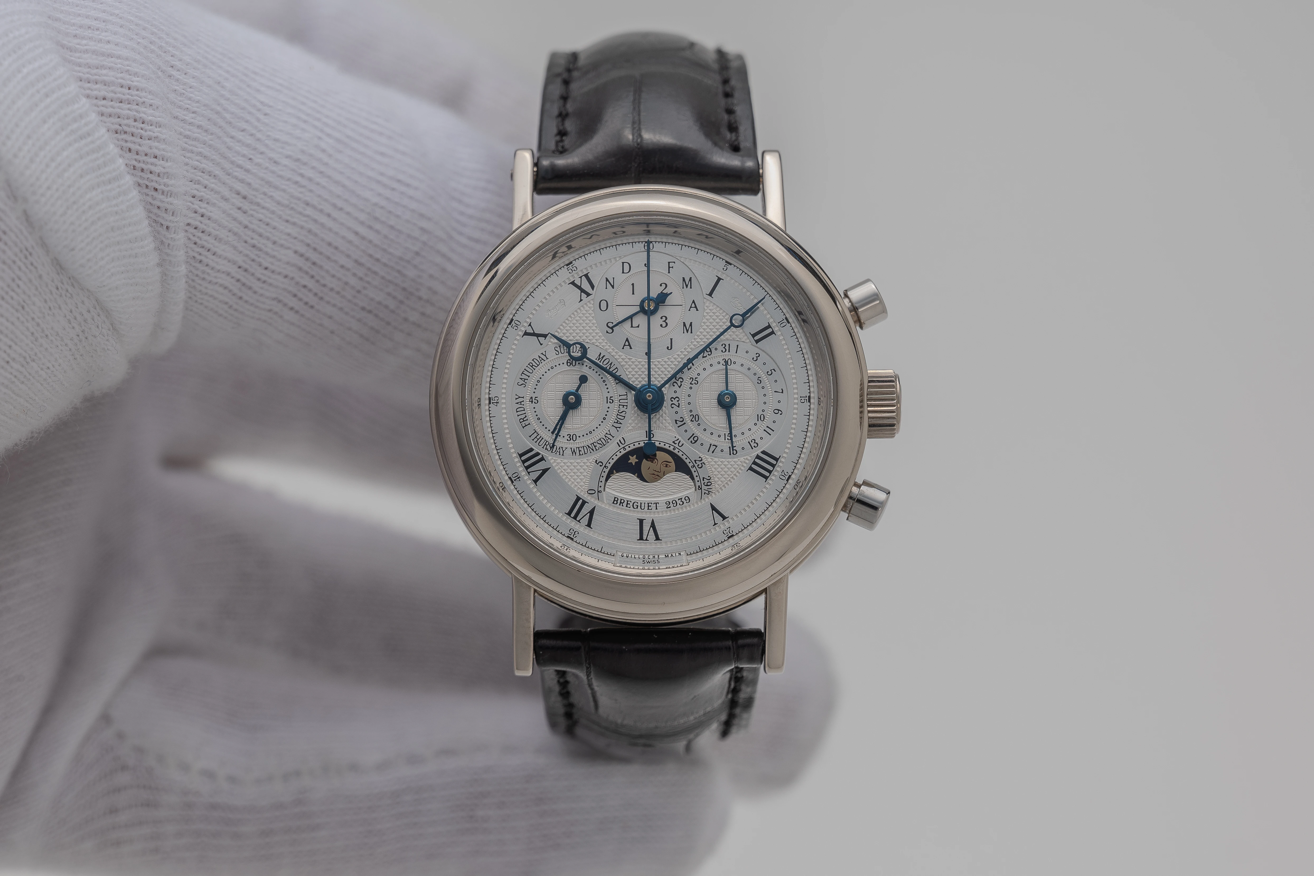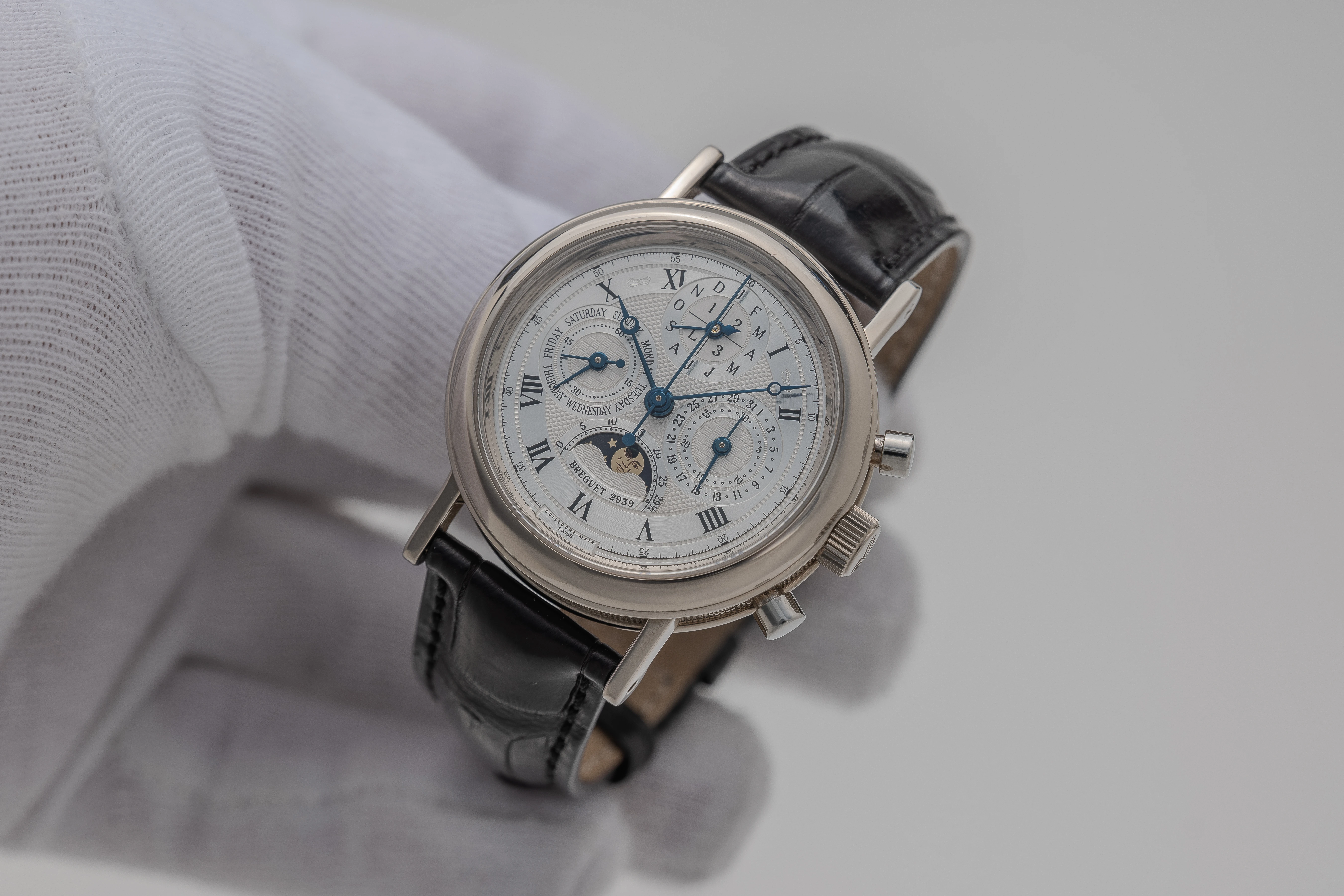 This Breguet Perpetual Calendar Chronograph Ref. 5617 definitely belongs to the last “white” 5617 series, which included watches in platinum or white gold. The 5617s in platinum are rare, while we estimate that the total production of all three Chrono-Perpetual references did not exceed 300–400 pieces in the ten years between 1992 and 2002.