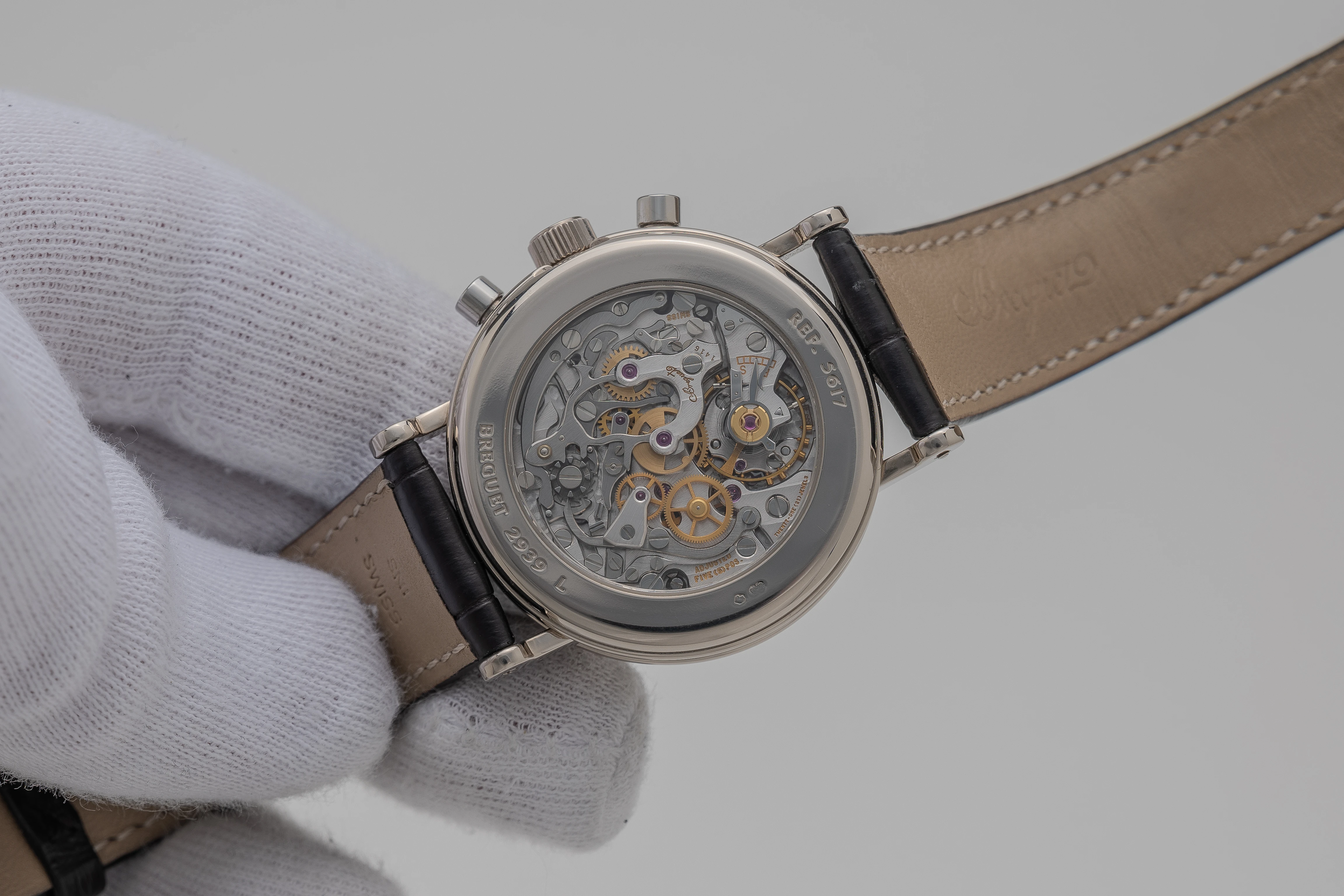Why do we think it logical to assume that there is a Ref. 3610? Because this reference, which differs from the 3617 that followed it in that it has a closed solid caseback instead of the exhibition caseback of the 3617, is absolutely in line with the logic of the development of the Breguet collection in the 1980s and early 1990s. The two Breguet chronographs 3230 and 3237, for example, are identical in terms of case size, design and dial layout. Breguet’s historical records show that the reference number 3230 was used as a general reference for both types of caseback, the solid and the exhibition caseback. Later, the reference number 3237 was introduced to accurately identify only the watches with an exhibition caseback. Following this logic, the original Breguet Chrono-Perpetual reference 3610, which could be fitted with both a solid and exhibition caseback, would have been replaced by reference 3617, which only had an exhibition caseback (circa 1994).