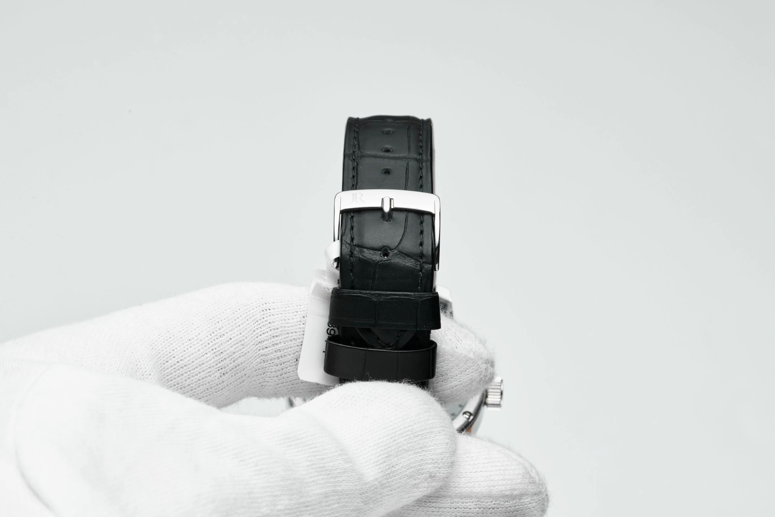 The finishing of all components shows a high proportion of manual work. This is especially true of the flat polishing of the steel parts, the shot-blasting and chamfering of the bridges in the traditional trapezoidal shape, the circular graining of the wheels decorated with gray rhodium, the esthetic ball burnishing of the pins, the tips of the wheel axles, and the meticulous concave polishing of the recesses around the jewels, pins, and screws.