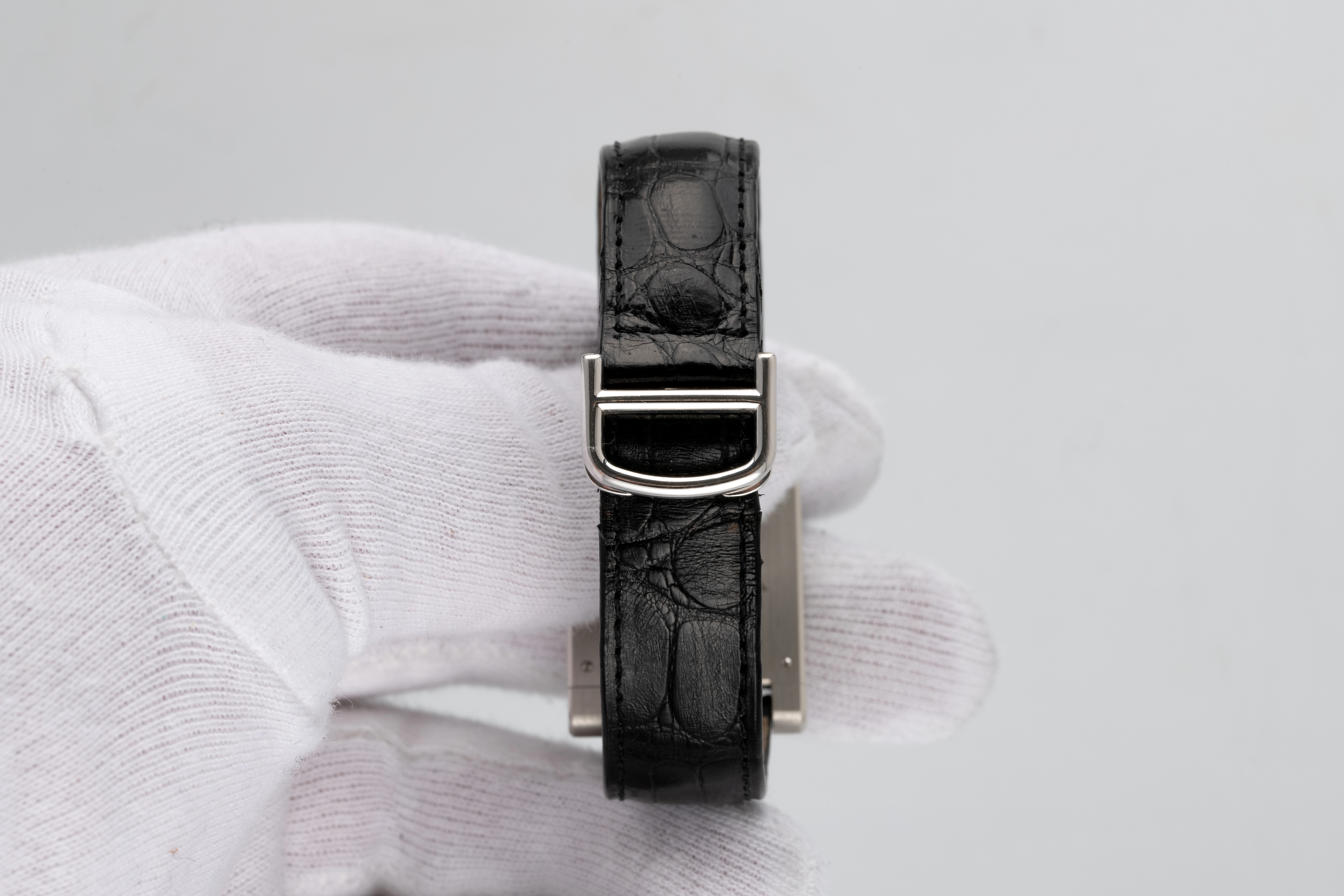 The watch was produced in an edition of 150 pieces in 950 platinum and was given a slightly larger case of 26 x 37 mm compared to historical watches, dictated by the emerging trend towards the popularity of larger wristwatches (it was in 1997 that the Vendôme group, which included Cartier, bought Panerai, the standard watch size of this brand was 44 mm, almost unimaginable in earlier times). Of course, the 1997 Tank à Guichet is still perceived today as a modest size, in keeping with the vintage Art Deco style of this edition. The movement that animated the displays of this model was based on a movement-blank supplied by Piaget, also belonging to the Vendôme group.