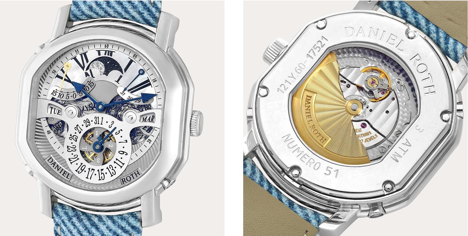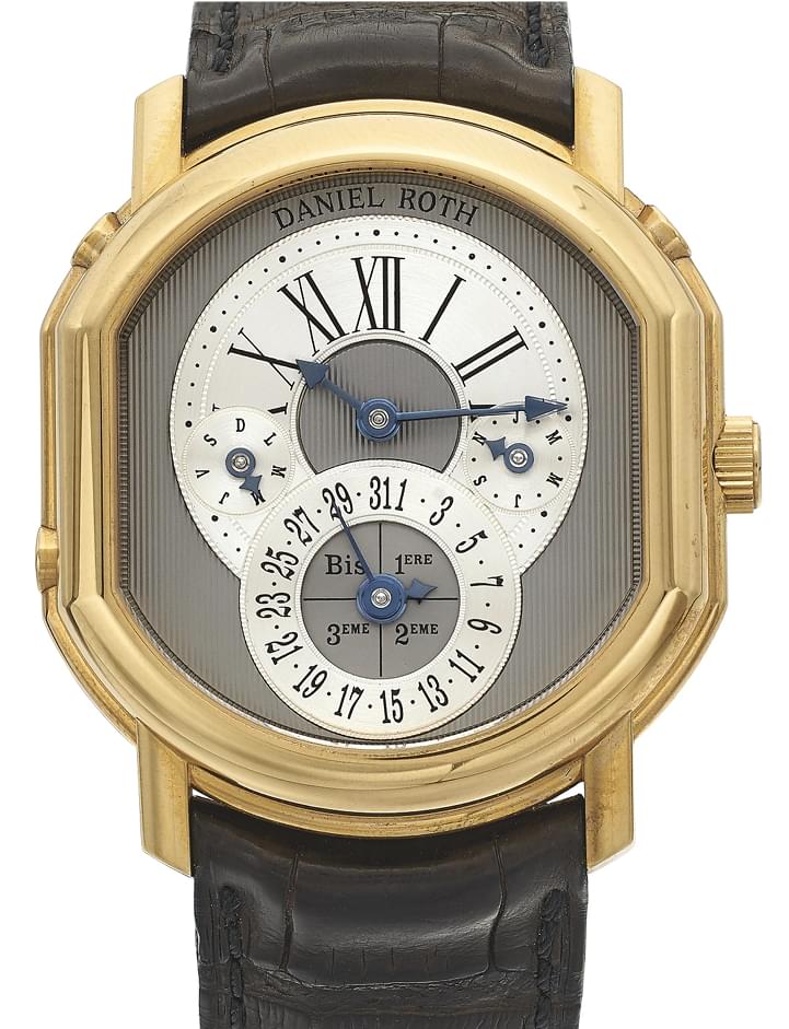 The history of Daniel Roth’s perpetual calendars begins with the time when Mr. Daniel Roth (I use “Mr.” to distinguish him from the brand of the same name that he founded) was actively involved in the development of the Breguet collection in the 1970s and 1980s (until 1987), while this brand was then part of Chaumet. The first watch he produced for Breguet was a perpetual calendar – a pocket watch made entirely by hand. In an interview with Acollectedman.com, Mr. Roth recalled, “Before embarking on the journey, I wanted to properly learn about complications, which is why I went back to school. I learnt everything I could, especially about perpetual calendar movements, doing all this work by hand.”