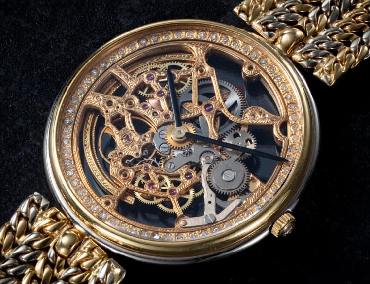 For skeleton watches Gérald Genta mainly used three basic calibers that were supplied by the then independent Frédéric Piguet factory (which, along with its sister brand Blancpain, was acquired by Swatch Group from its former owners in 1992).