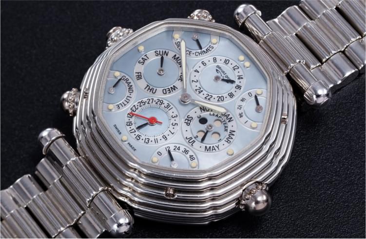 For the Grande Sonnerie watches, Mr. Genta created his most detailed designs in the Baroque style. Among them, the octagonal version of the design predominates, although there are also watches in other shapes. The Grande Sonnerie was of course only produced in extremely limited numbers due to the incredible complexity of the movement and will remain an unforgettable testament to Mr. Genta’s horological genius.
