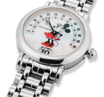 On the early Fantasy watches from 1984 to 1996, hands, paws or other character attributes, such as the legs of a nude woman or a golf club, are used to indicate the hours and minutes on a classic analog 12-hour dial. Since 1996, the dials of the Rétro Fantasy watches have shown the time with a jumping digital hour display and a retrograde minute hand, while the classic Fantasy watches were immediately discontinued.